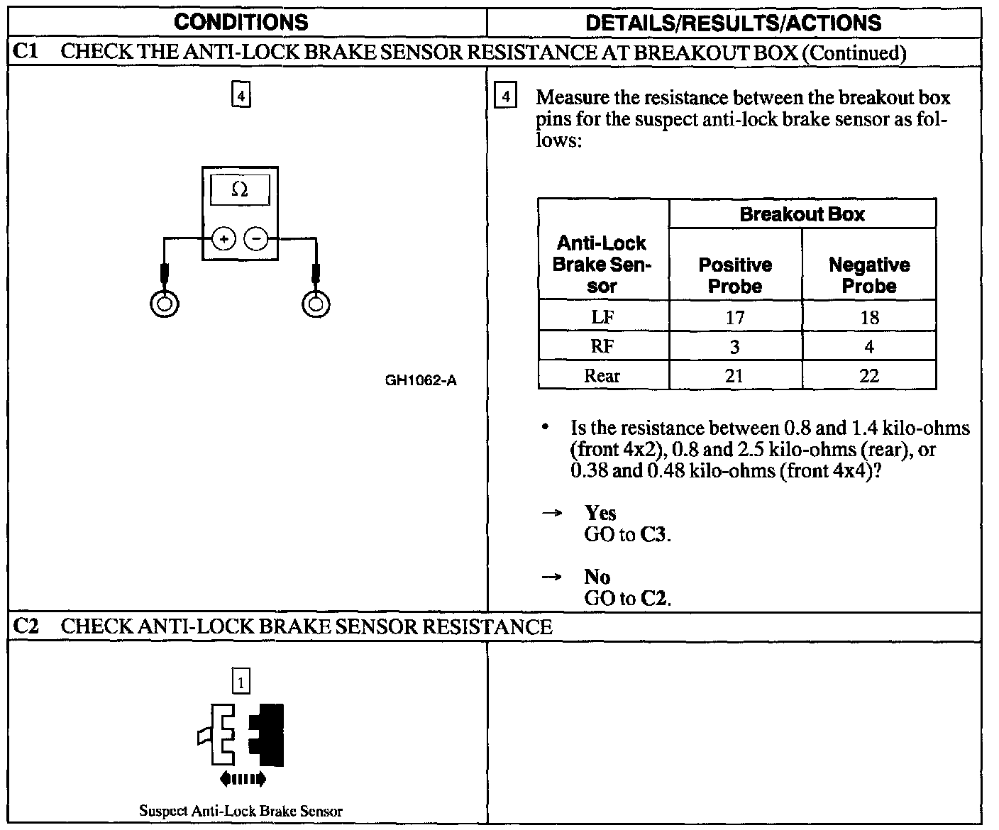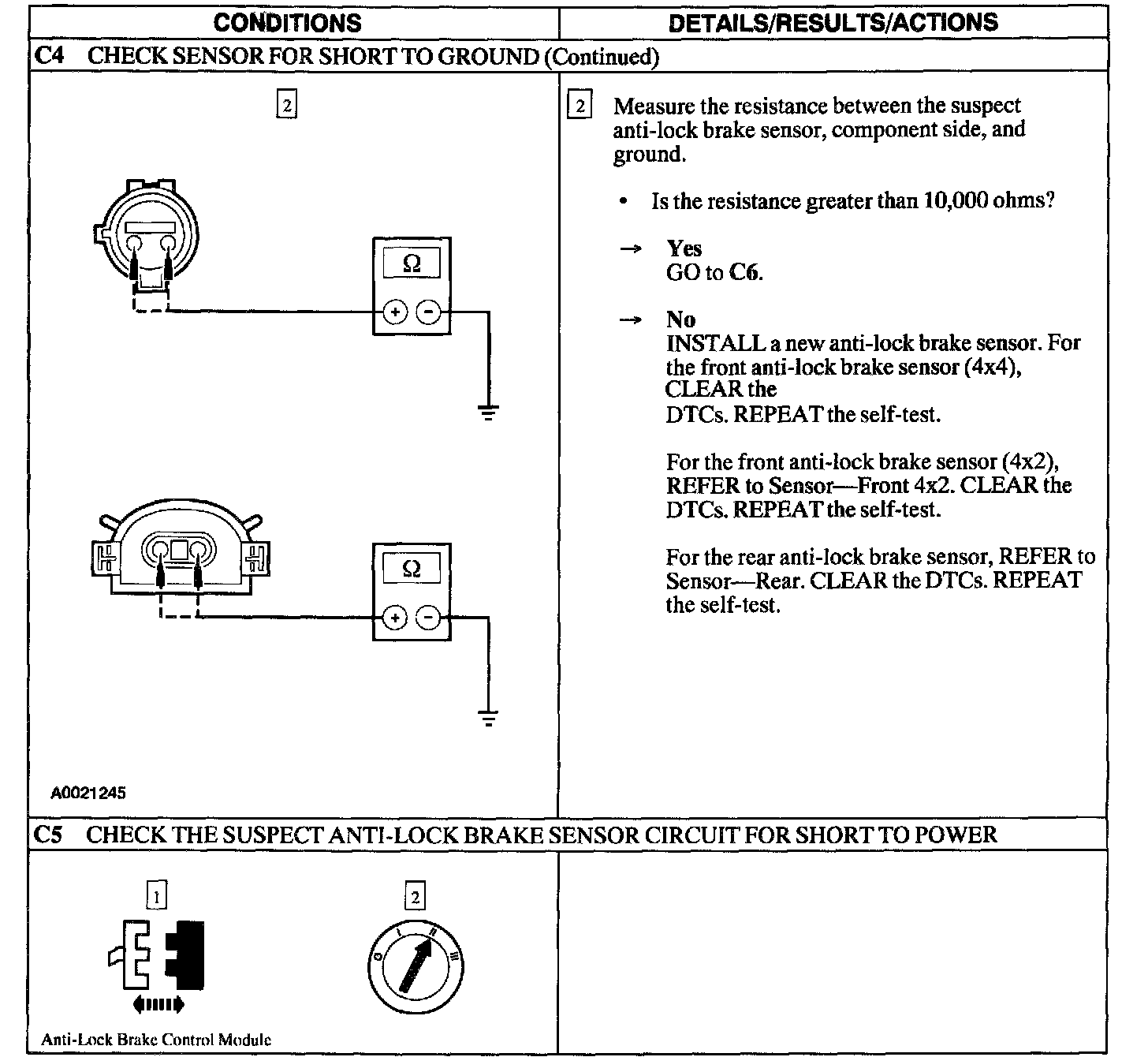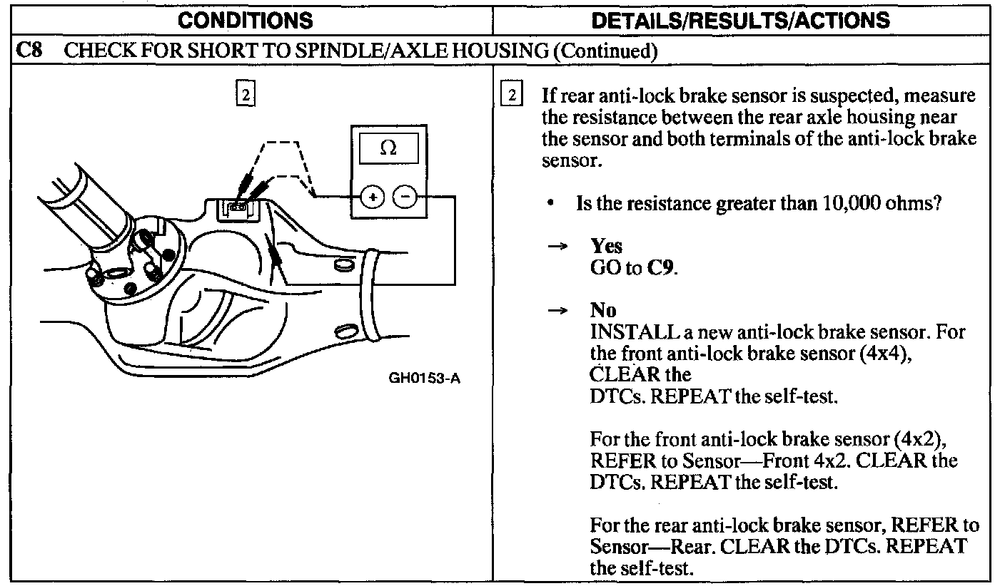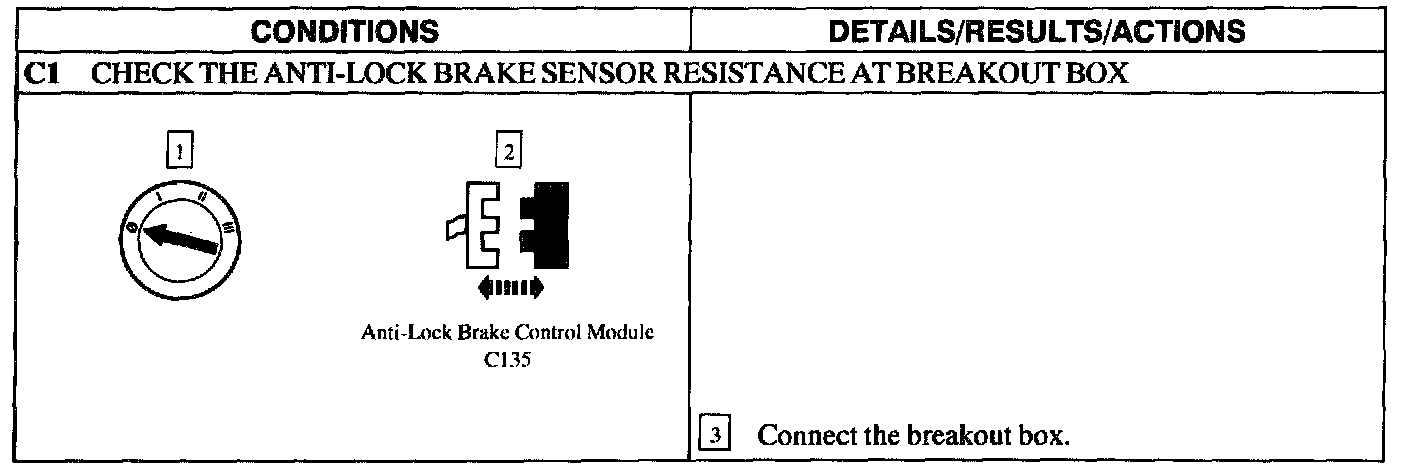 PINPOINT TEST C: DTC'S C1 145, C1 155, AND C1230 - ANTI-LOCK BRAKE SENSOR CIRCUIT FAILURE
