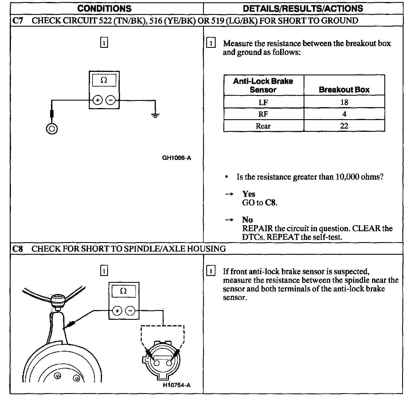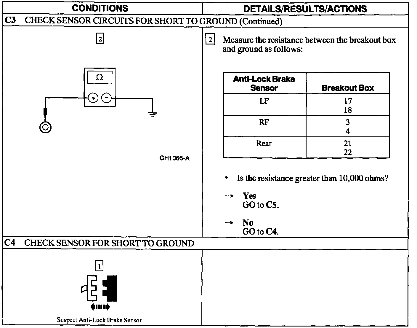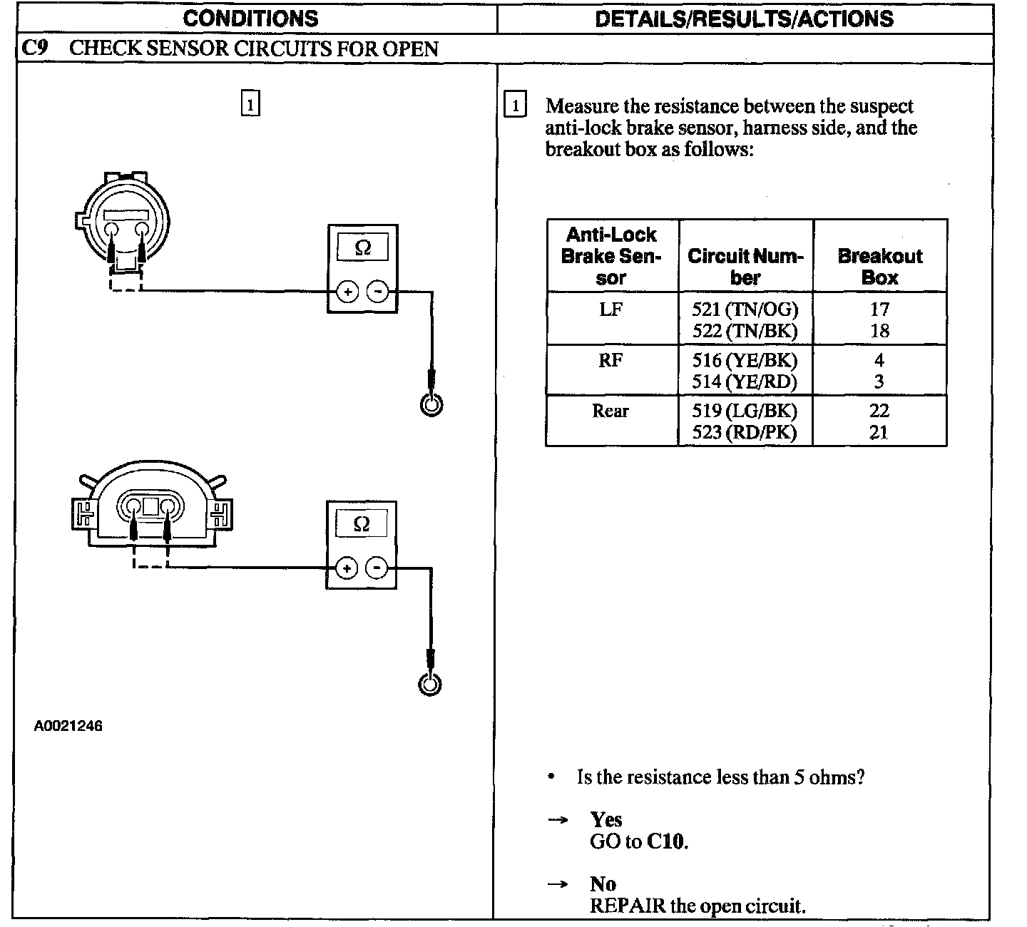 PINPOINT TEST C: DTC'S C1 145, C1 155, AND C1230 - ANTI-LOCK BRAKE SENSOR CIRCUIT FAILURE