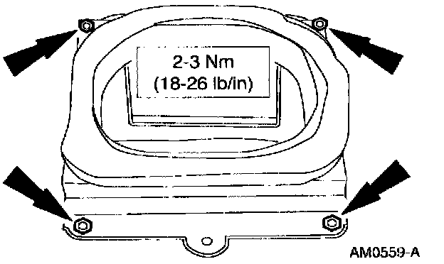 2. Remove the screws from the air inlet duct door vacuum control motor and disconnect the vacuum hose.