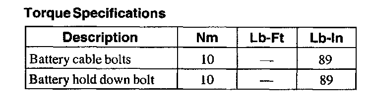 Torque Specifications: