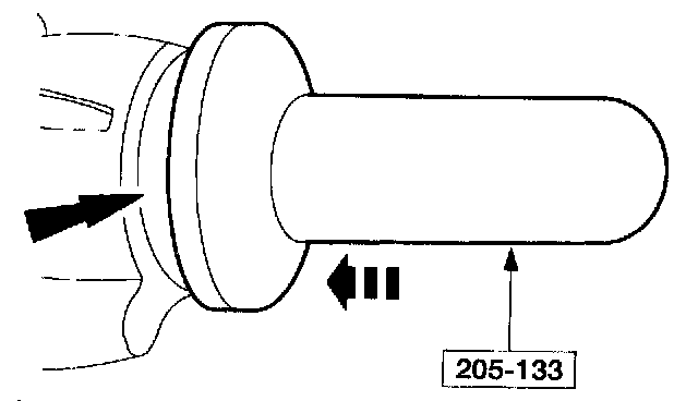 - Using the special tool and a suitable press, seat the differential pinion bearing firmly against the pinion position shim.