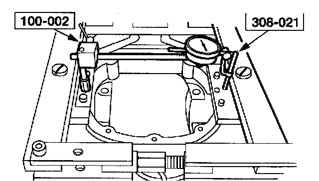 2. Force the differential case as far as possible away from the indicator. Position the indicator tip on the machined surface and adjust it to measure full travel. With force still applied, set the indicator to zero.