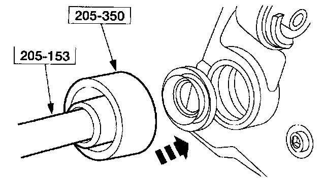 44. Using the special tools, install the axle tube bearing.