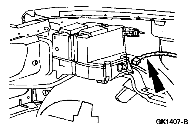 2. Disconnect the coolant overflow hose from the engine coolant overflow reservoir and plug the outlet port of the reservoir.