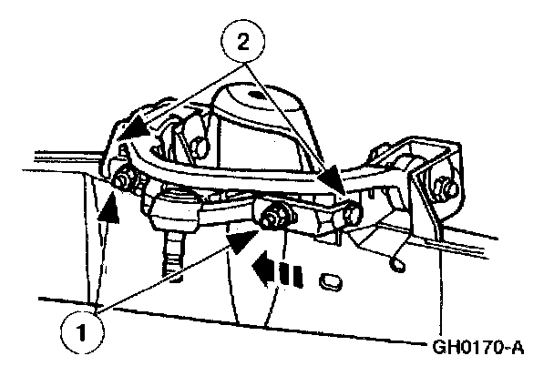 3. NOTE: A pry bar can be used between the front suspension arm bushing joint and the frame pocket to aid in moving the arm.