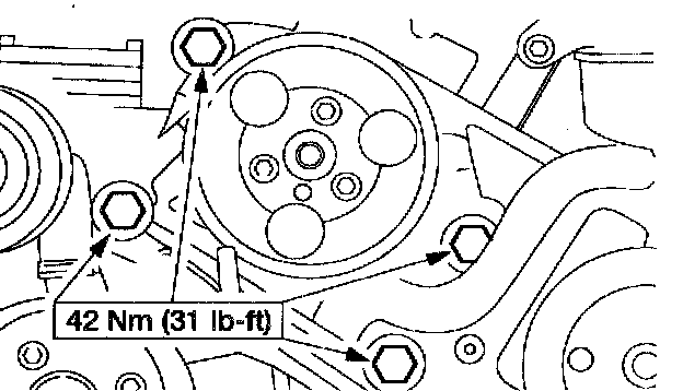 120. Rotate the drive belt tensioner counterclockwise and install the drive belt.