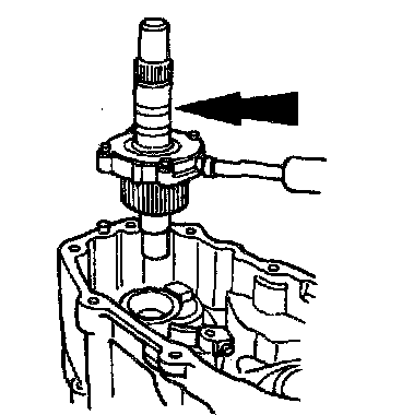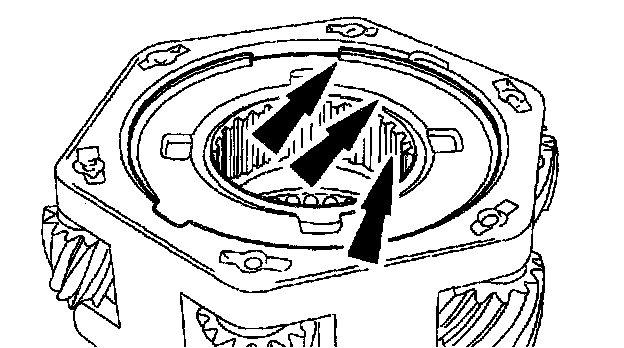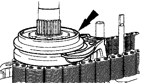 - Align the pinion gears gear teeth and the ring gear teeth. Expand the snap ring and push inward on the planet carrier until the input shaft assembly seats fully in the front adapter. Verify that the snap ring engaged the assembly by holding the front adapter and lightly tapping the face of the input shaft assembly against a wooden block.