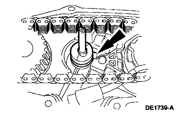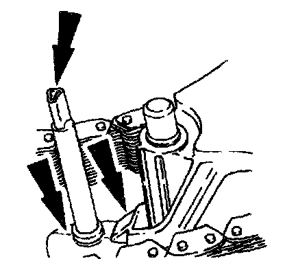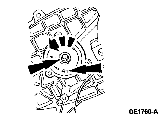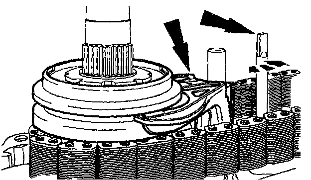 38. Lift upward on the lockup fork slightly while holding down on the shift rail and rotate the electric shift cam track into the cam roller by turning the shift shaft.