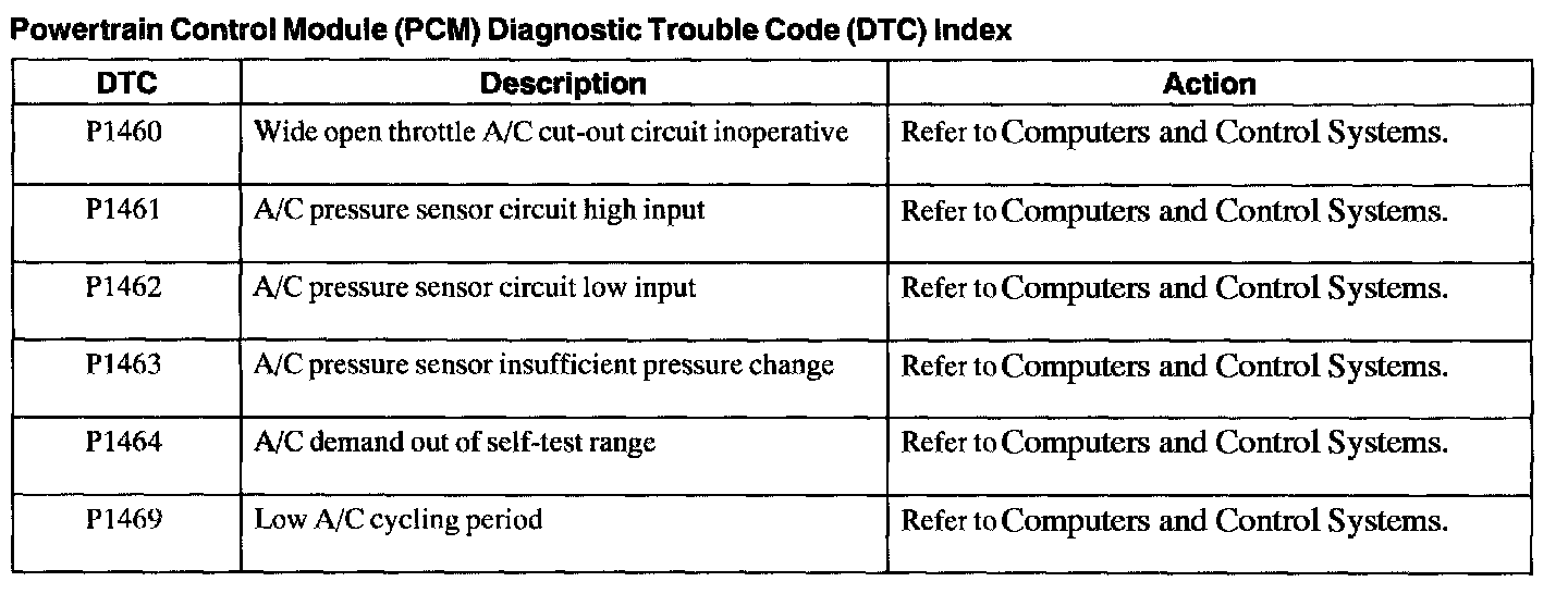 Powertrain Control Module Diagnostic Trouble Code (DTC) Index