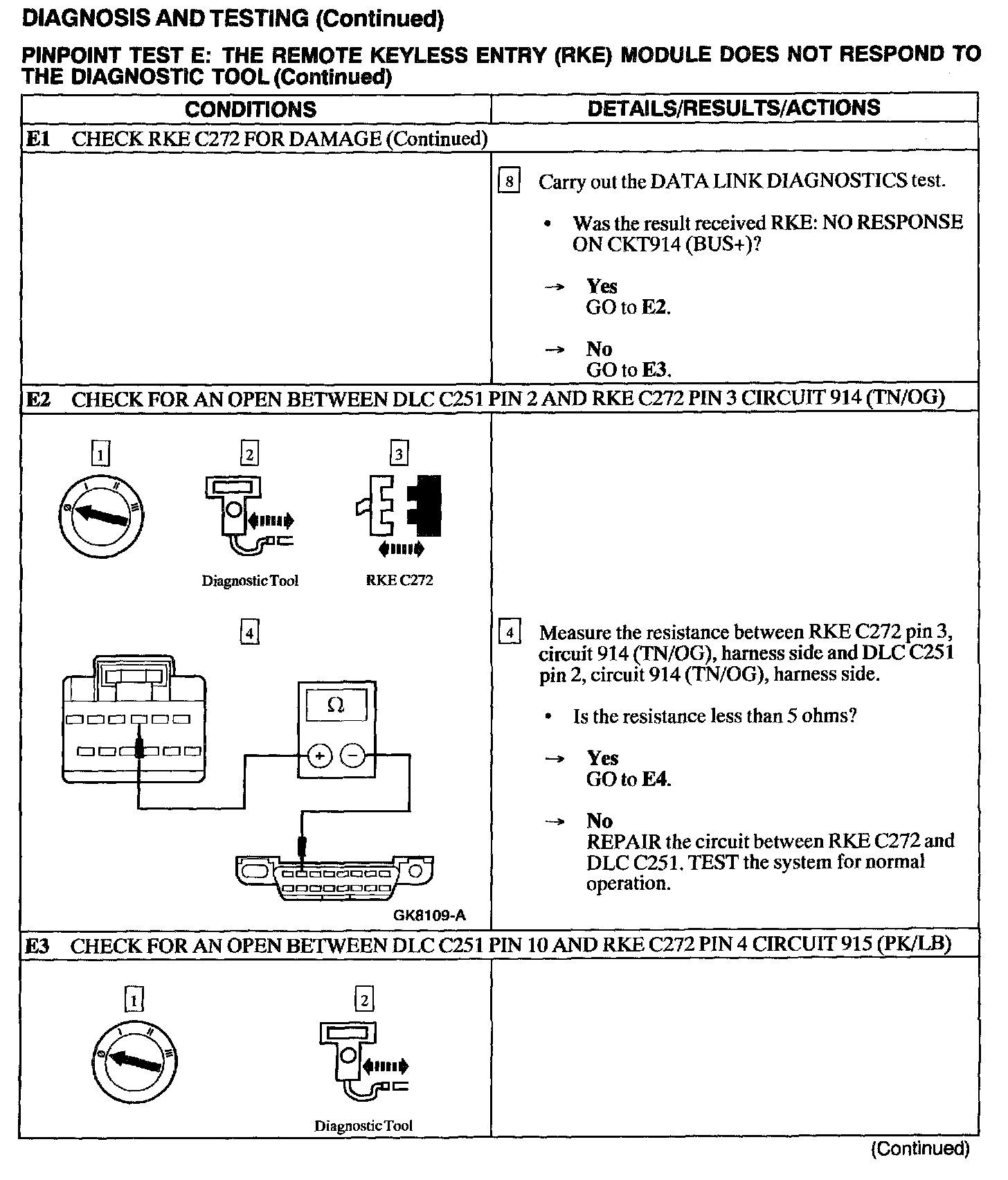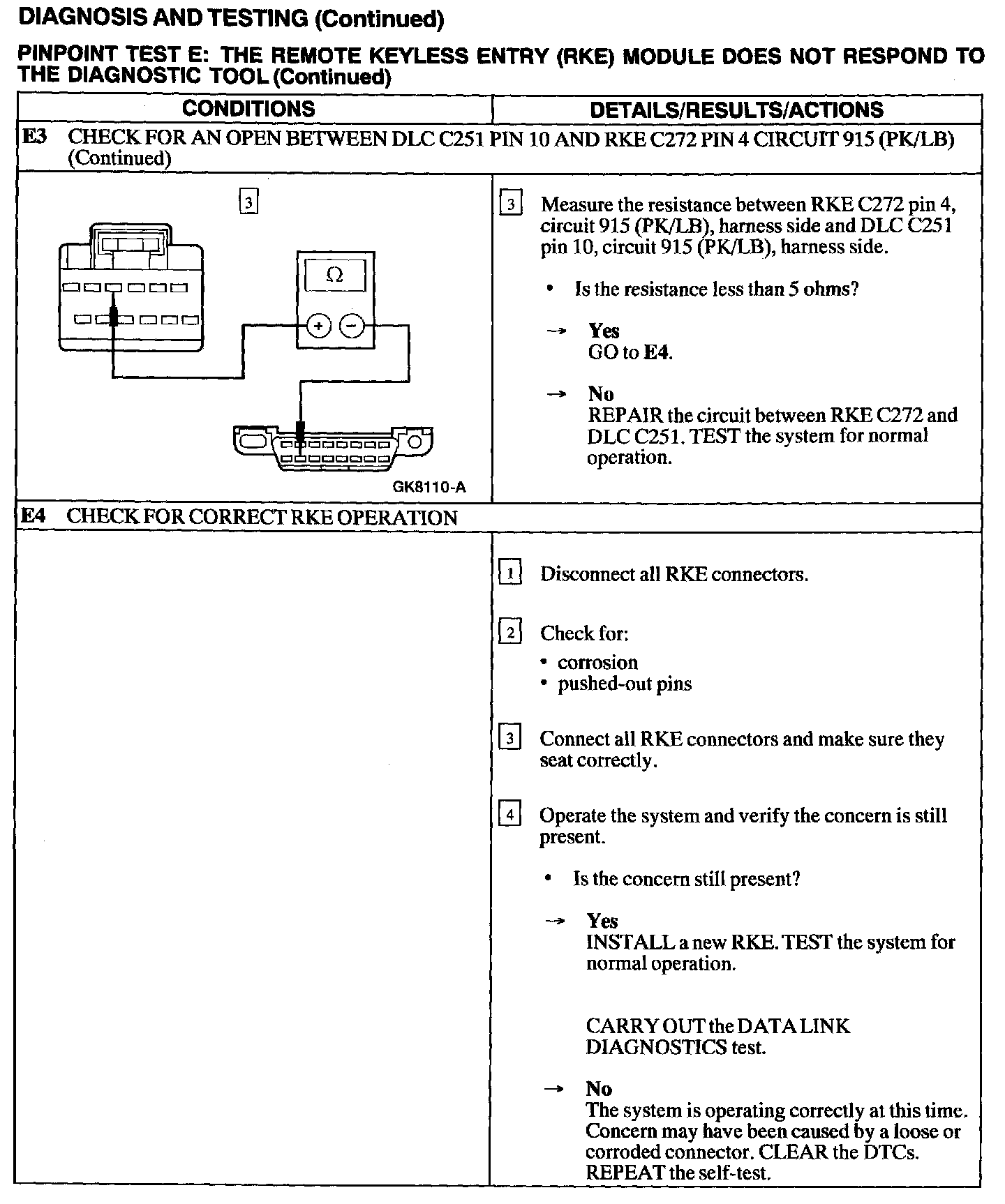 Test E: RKE Module Does Not Respond To The Diagnostic Tool