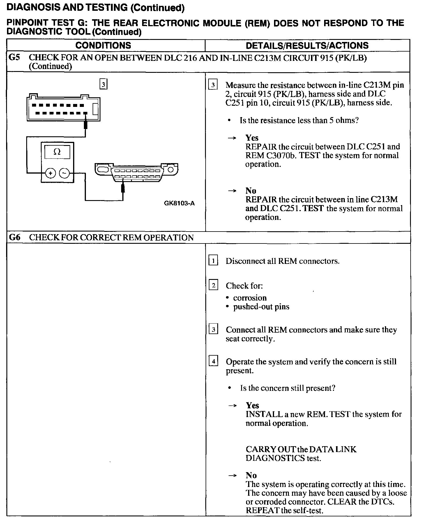 Test G: REM Module Does Not Respond to the Scan Tool