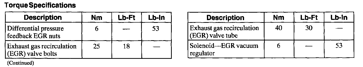 Torque Specifications: