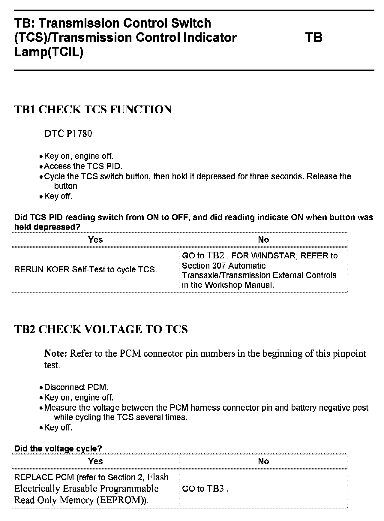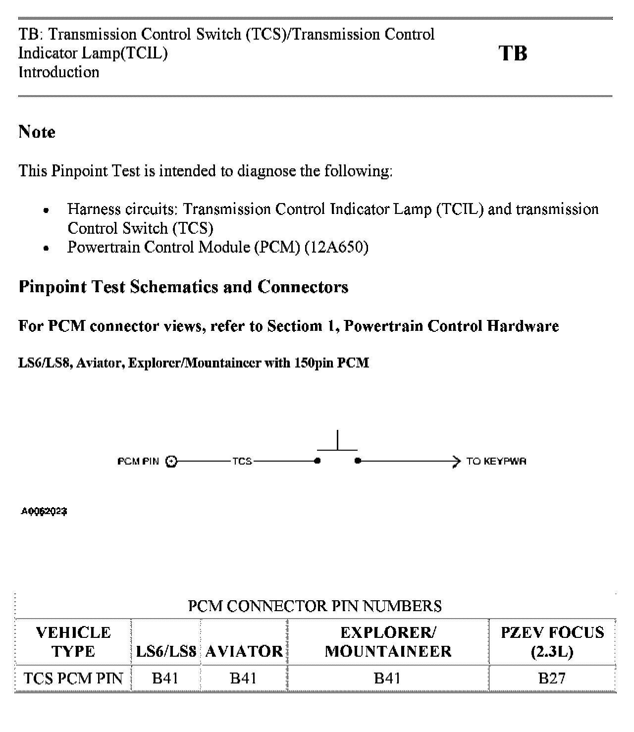 Tests TB: Trans Control Switch/Trans Control Indicator Lamp