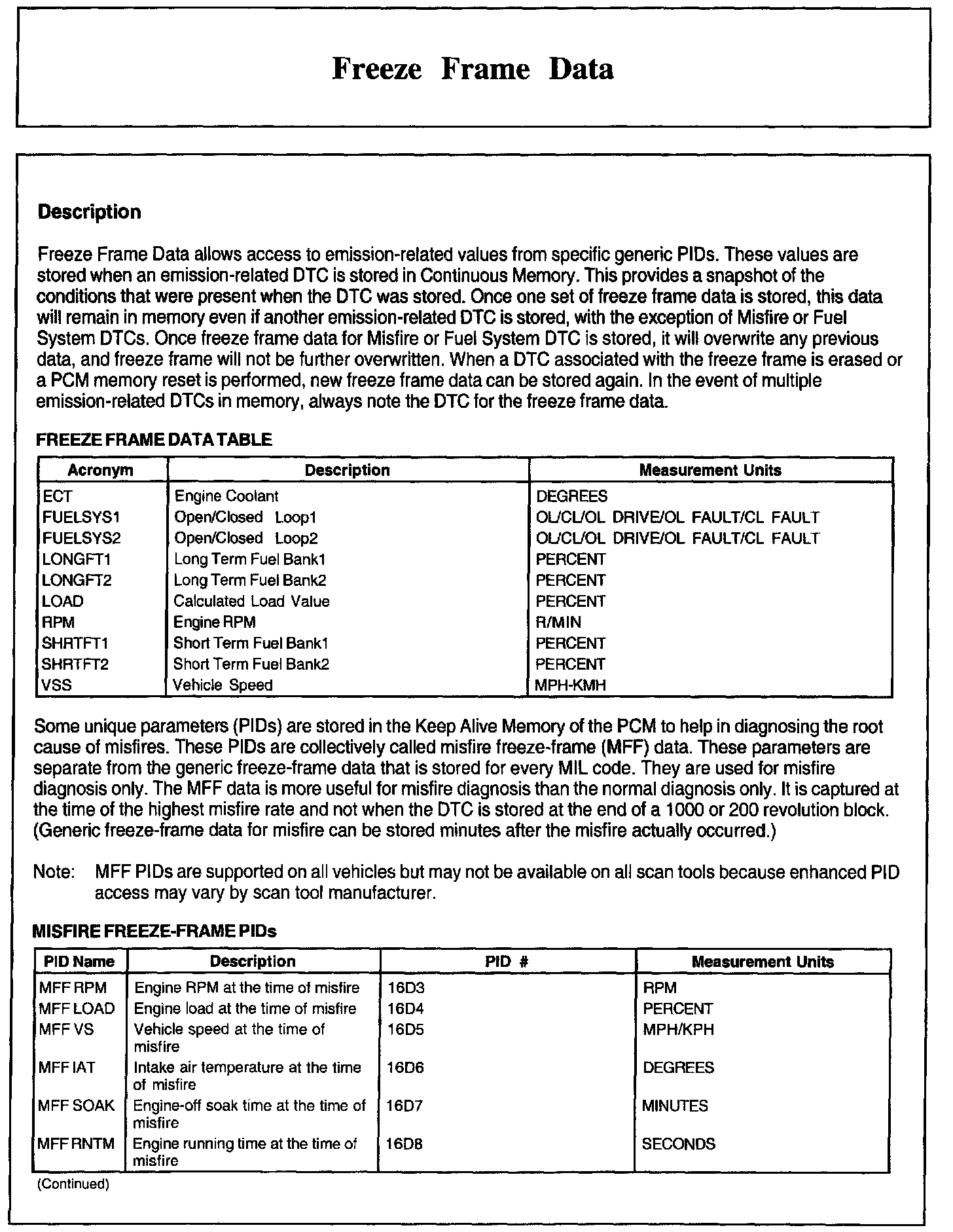 Freeze Frame Data