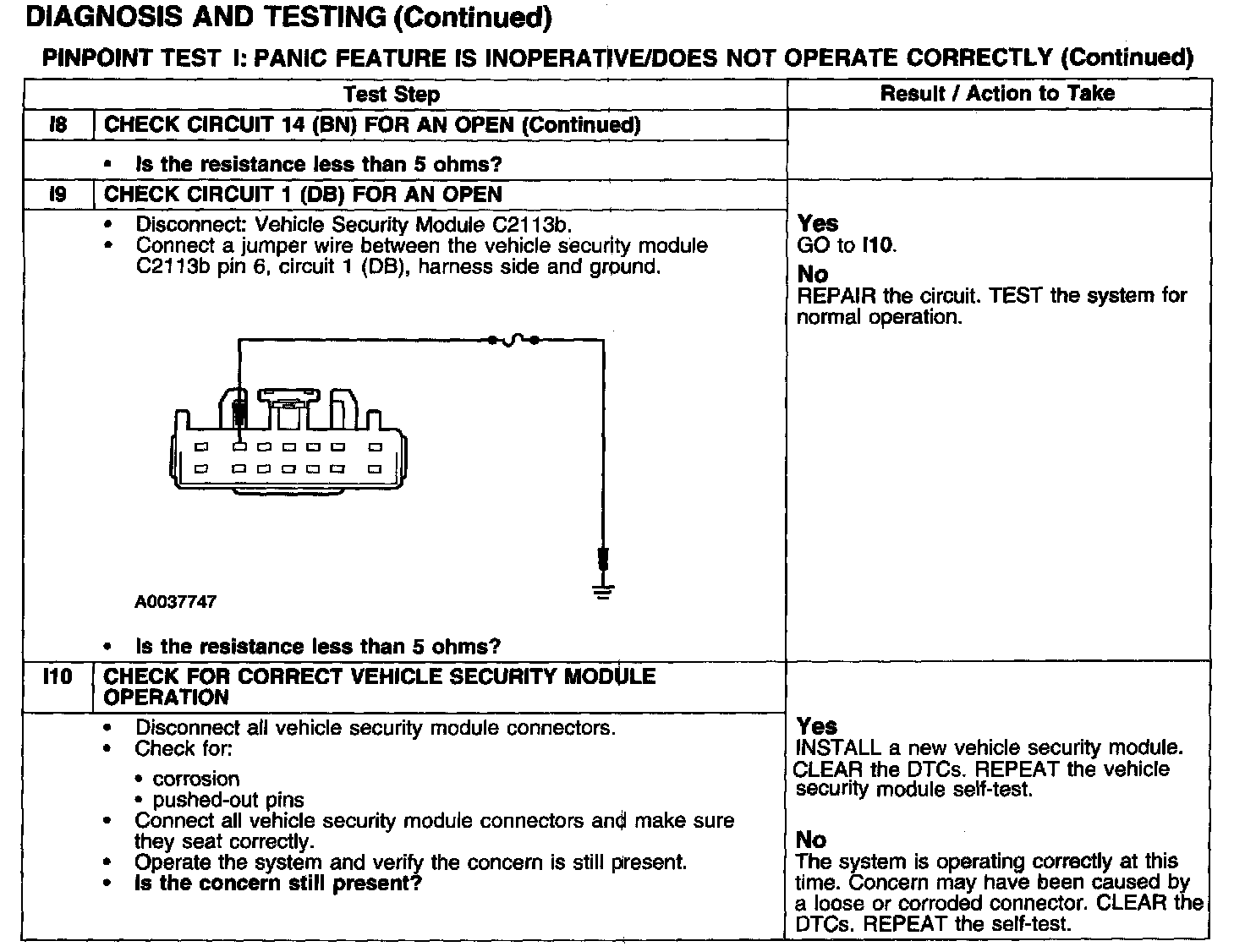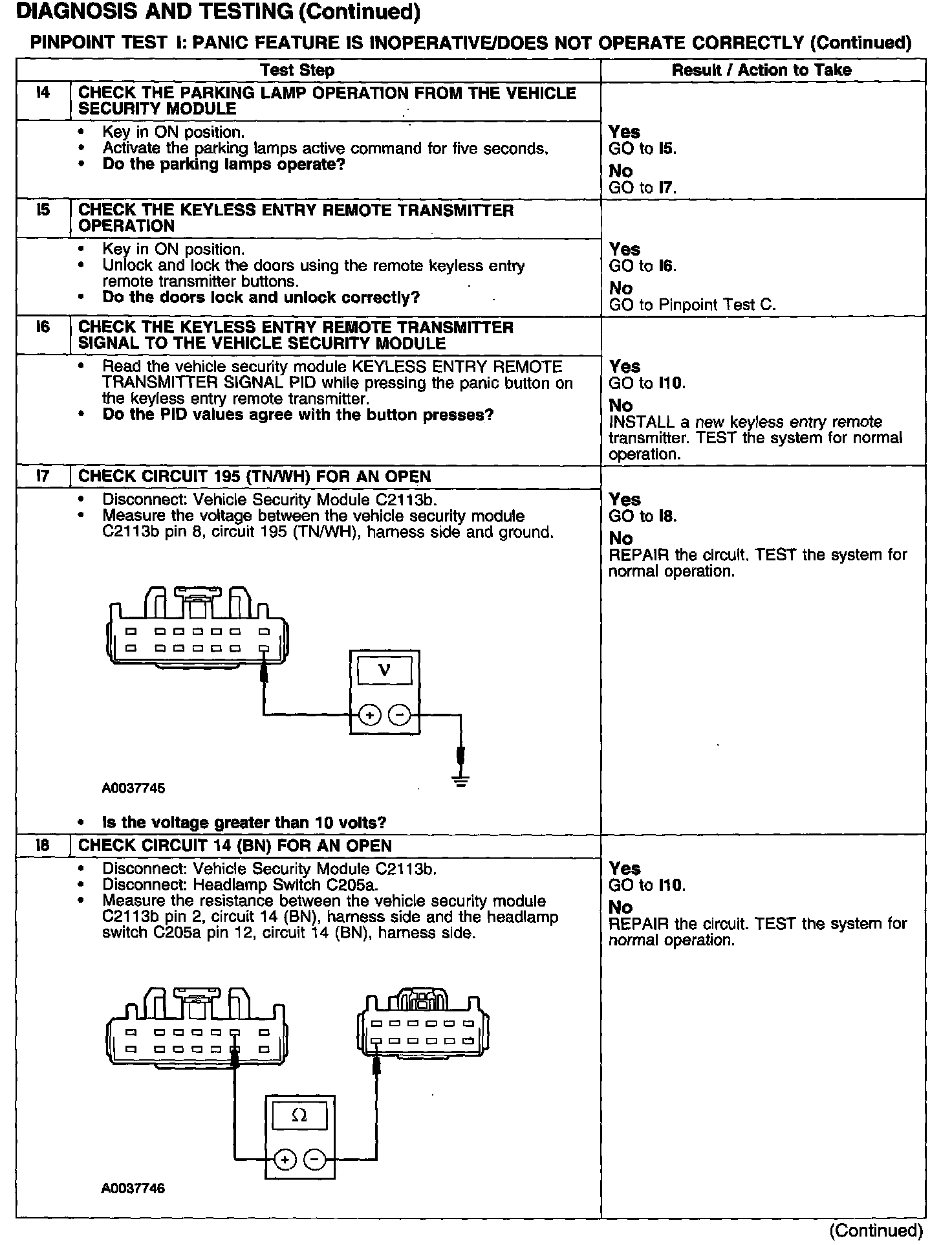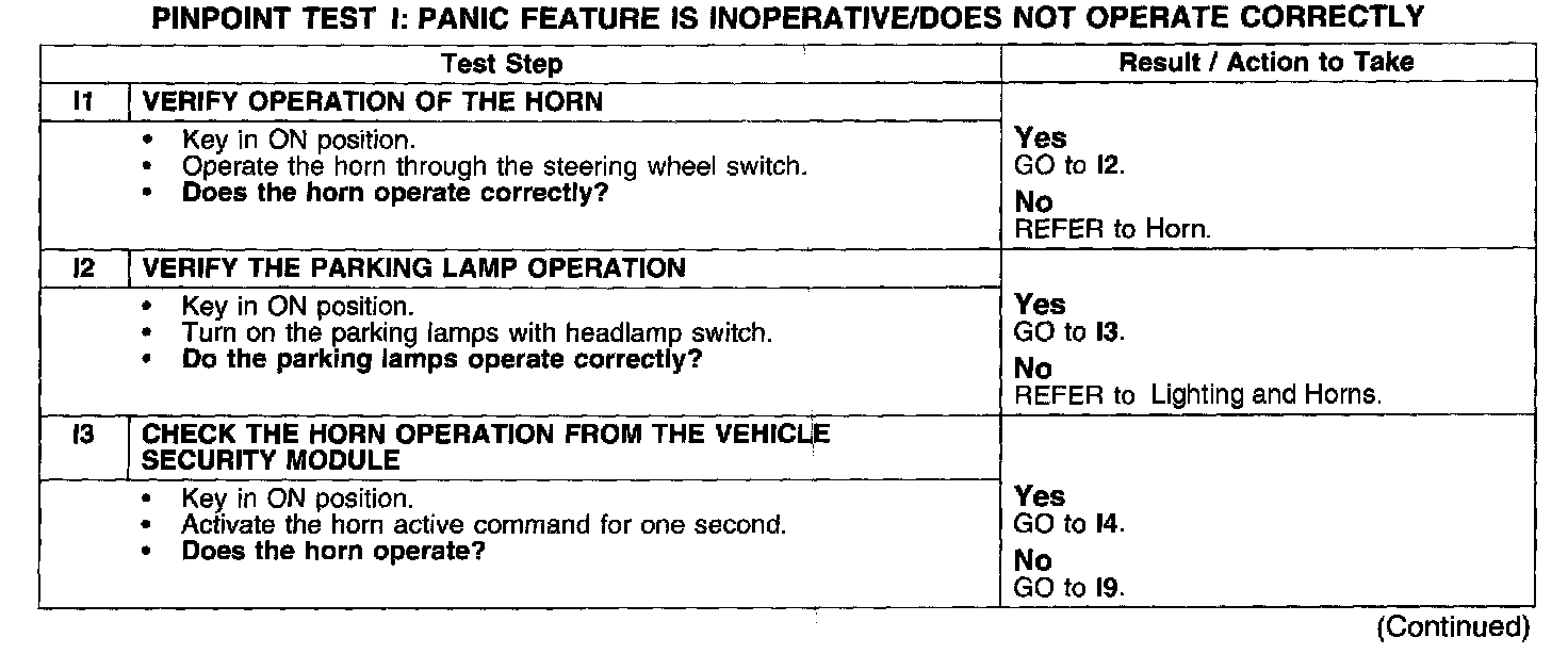 PINPOINT TEST I: PANIC FEATURE IS INOPERATIVE/DOES NOT OPERATE CORRECTLY