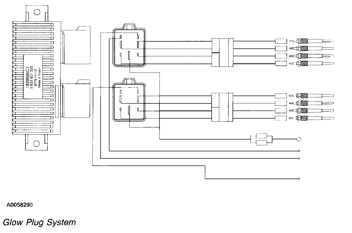 The glow plug system is composed of a solid state Glow Plug Control Module (GPCM), glow plugs and the associated wiring harness. The glow plug on-time is controlled by the Powertrain Control Module (PCM) and is a function of oil temperature, barometric pressure and battery voltage. The PCM enables the GPCM which drives the individual glow plugs. Glow plug on-time, varies between 1 to 120 seconds. In addition to the PCM control, the GPCM limits the glow plug operation to 180 seconds regardless of PCM commanded ontime. The power to the glow plugs is provided through the GPCM solid state drivers directly from the vehicle battery. The GPCM monitors and detects individual glow plug functionality, and the control and communication links to the PCM. The failures detected by the GPCM are passed to the PCM using a serial communication signal on the diagnostic line.