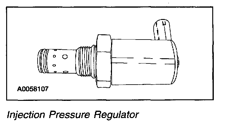The Injection Pressure Regulator controls injection oil pressure. An electrical signal to a solenoid creates a magnetic field which applies a variable force on a valve servo to control pressure. The quantity of fuel delivered to the combustion chamber is proportional to injection control pressure.