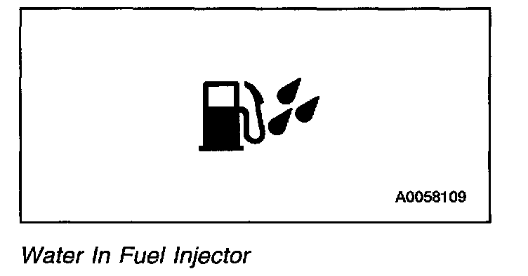 The Water in Fuel Indicator is controlled by the instrument cluster. The cluster receives electronic information, via Standard Corporate Protocol (SCP) communications, from the PCM for water in fuel status. If the water in fuel sensor indicates that there is water in the fuel separator/housing (located within the fuel condition module), the PCM sends an SCP message to the cluster to illuminate the water in fuel indicator.