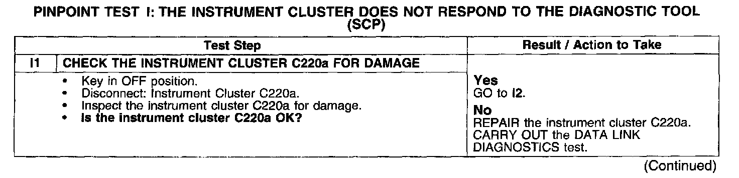 PINPOINT TEST I: THE INSTRUMENT CLUSTER DOES NOT RESPOND TO THE DIAGNOSTIC TOOL (SCP)