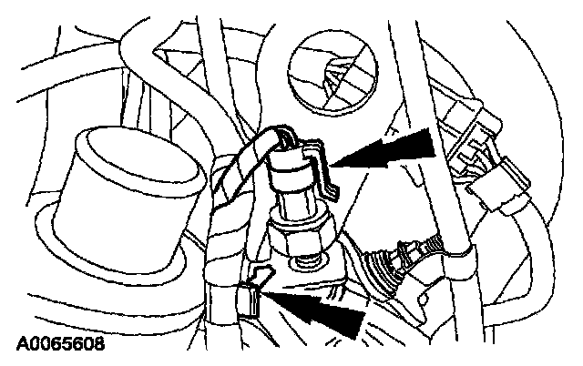 2. Disconnect the electrical harness clip and disconnect the exhaust back pressure sensor electrical connector.