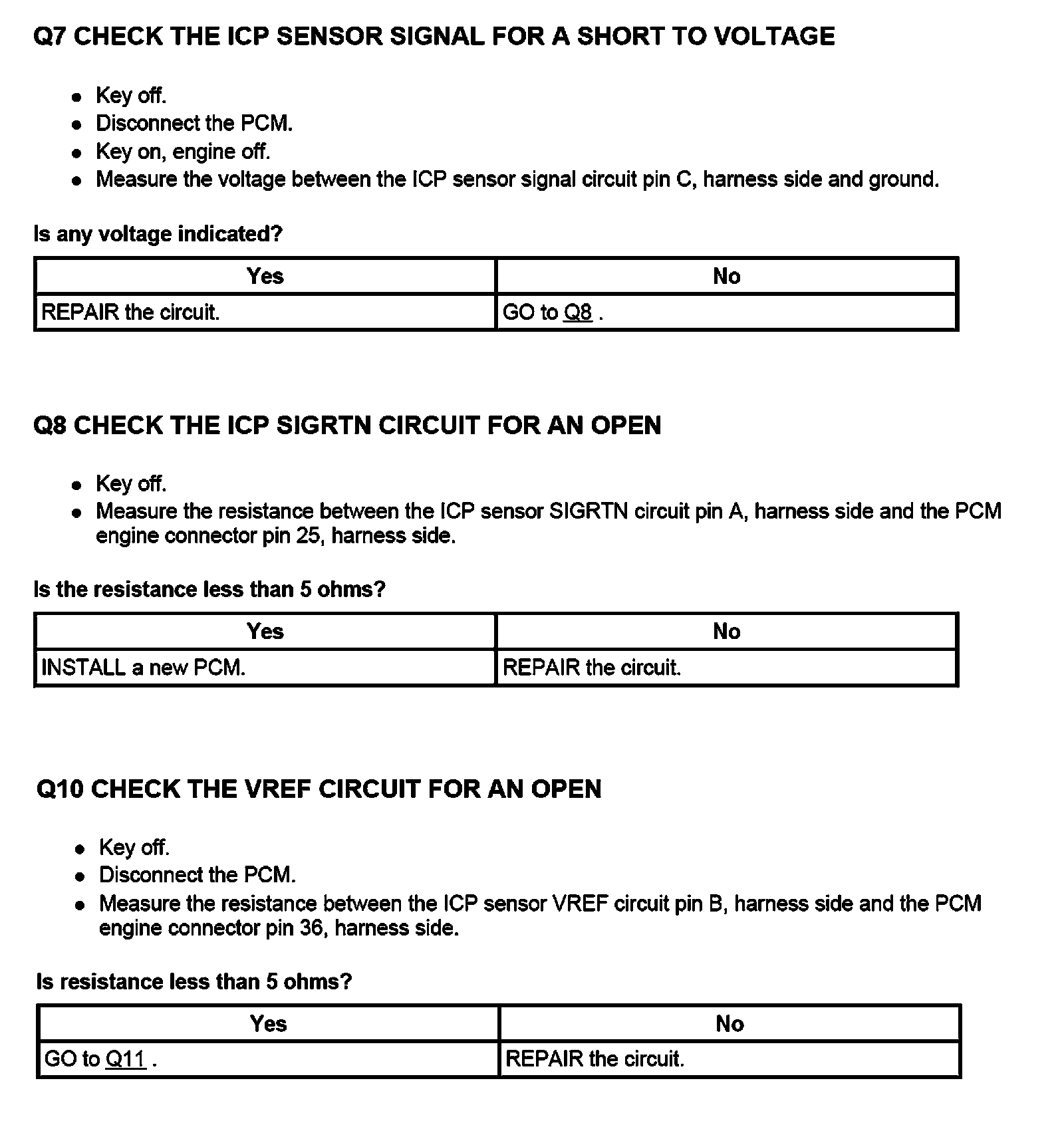 PINPOINT TEST Q: INJECTION CONTROL PRESSURE (ICP) SENSOR