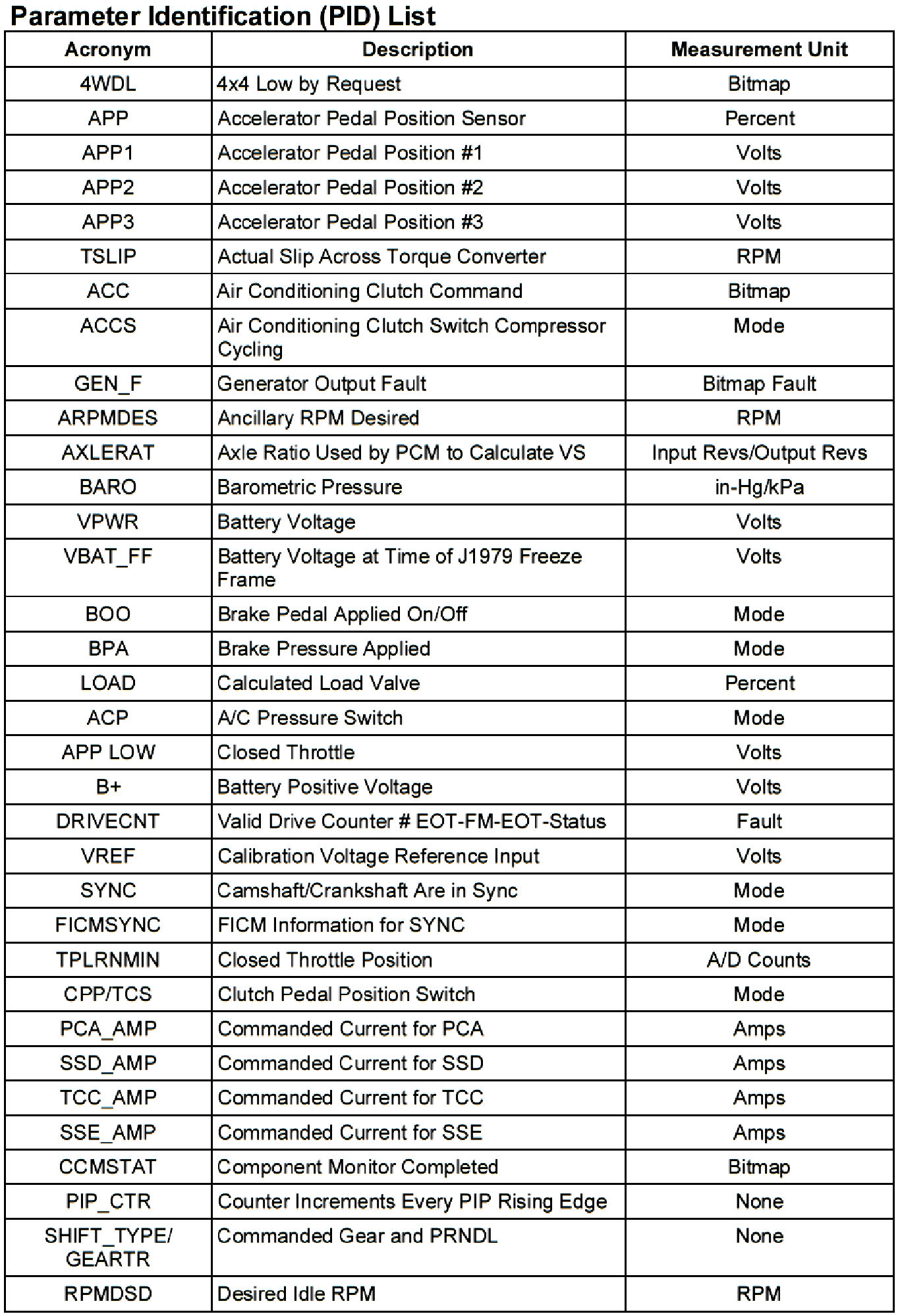The Parameter Identification (PID) mode allows access to certain data values, analog and digital inputs and outputs, calculated values, and system status information. Throughout the manual, there will be references to PID values. PID Data Monitor and Record can be accessed from the scan tool through the Diagnostic Data Link menu.