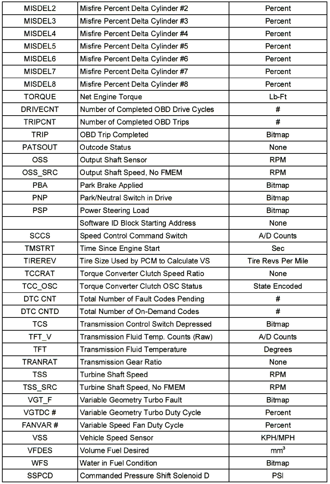 Parameter Identification (PID) List