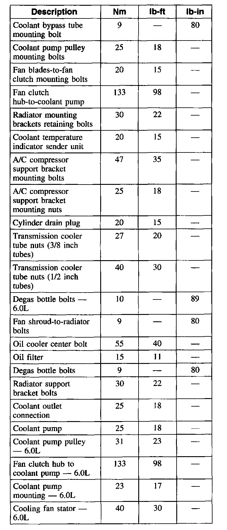 Torque Specifications