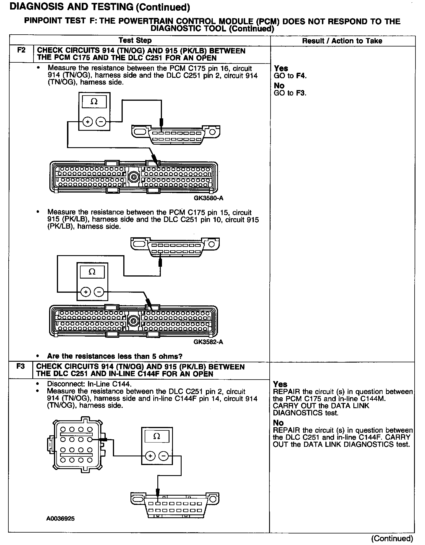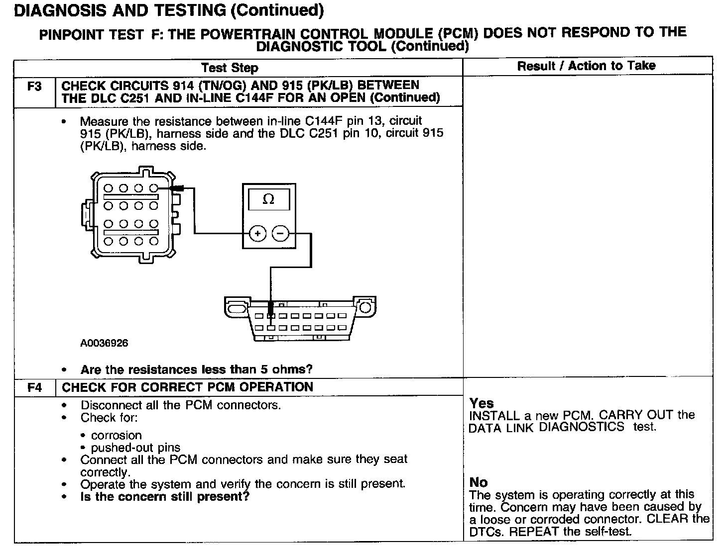 PINPOINT TEST F: THE POWERTRAIN CONTROL MODULE (PCM) DOES NOT RESPOND TO THE DIAGNOSTIC TOOL