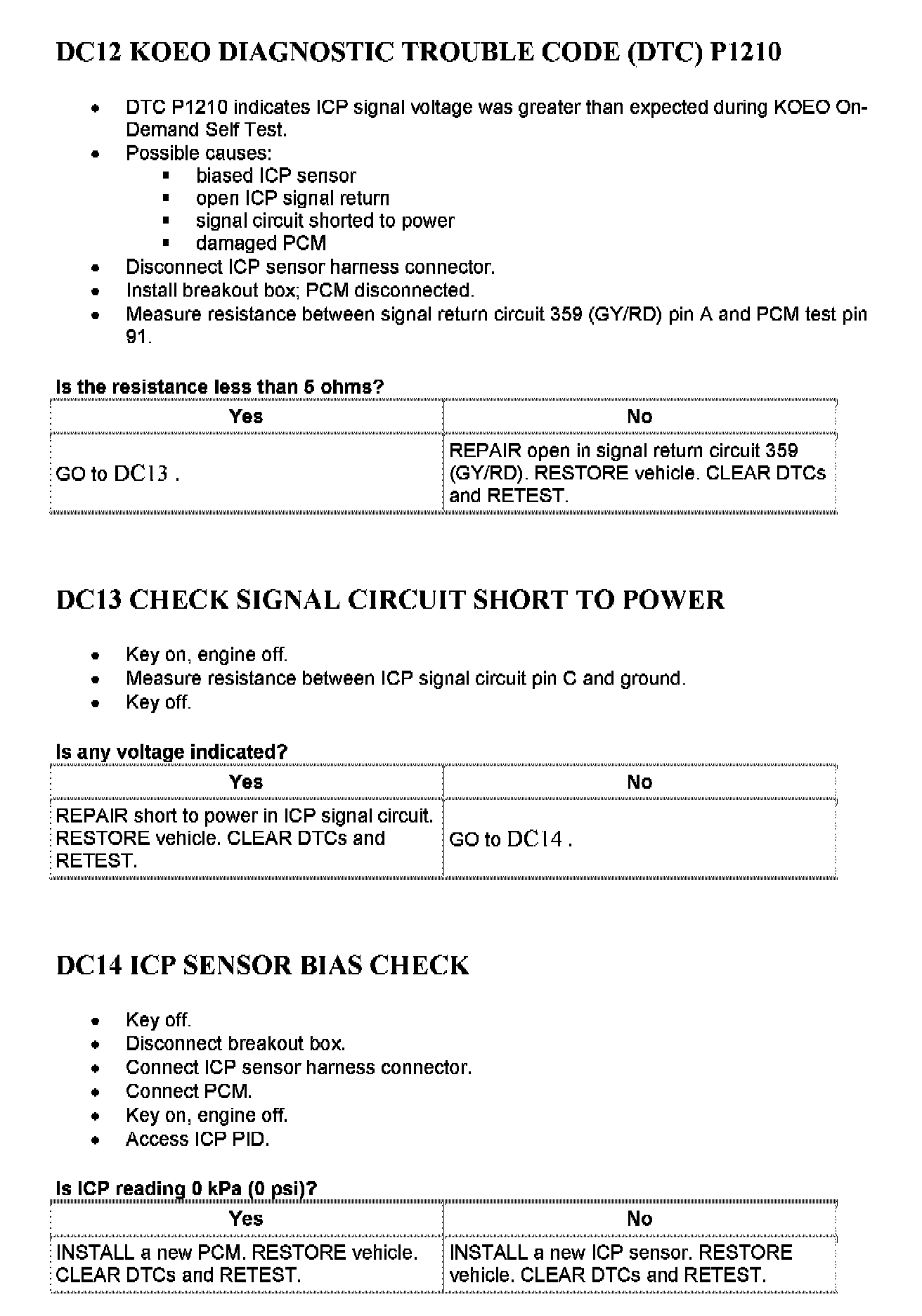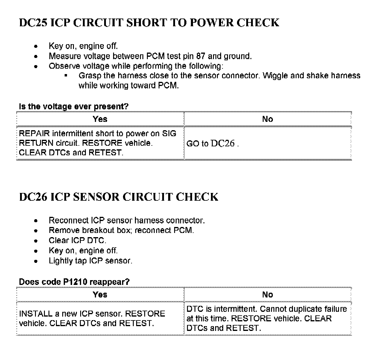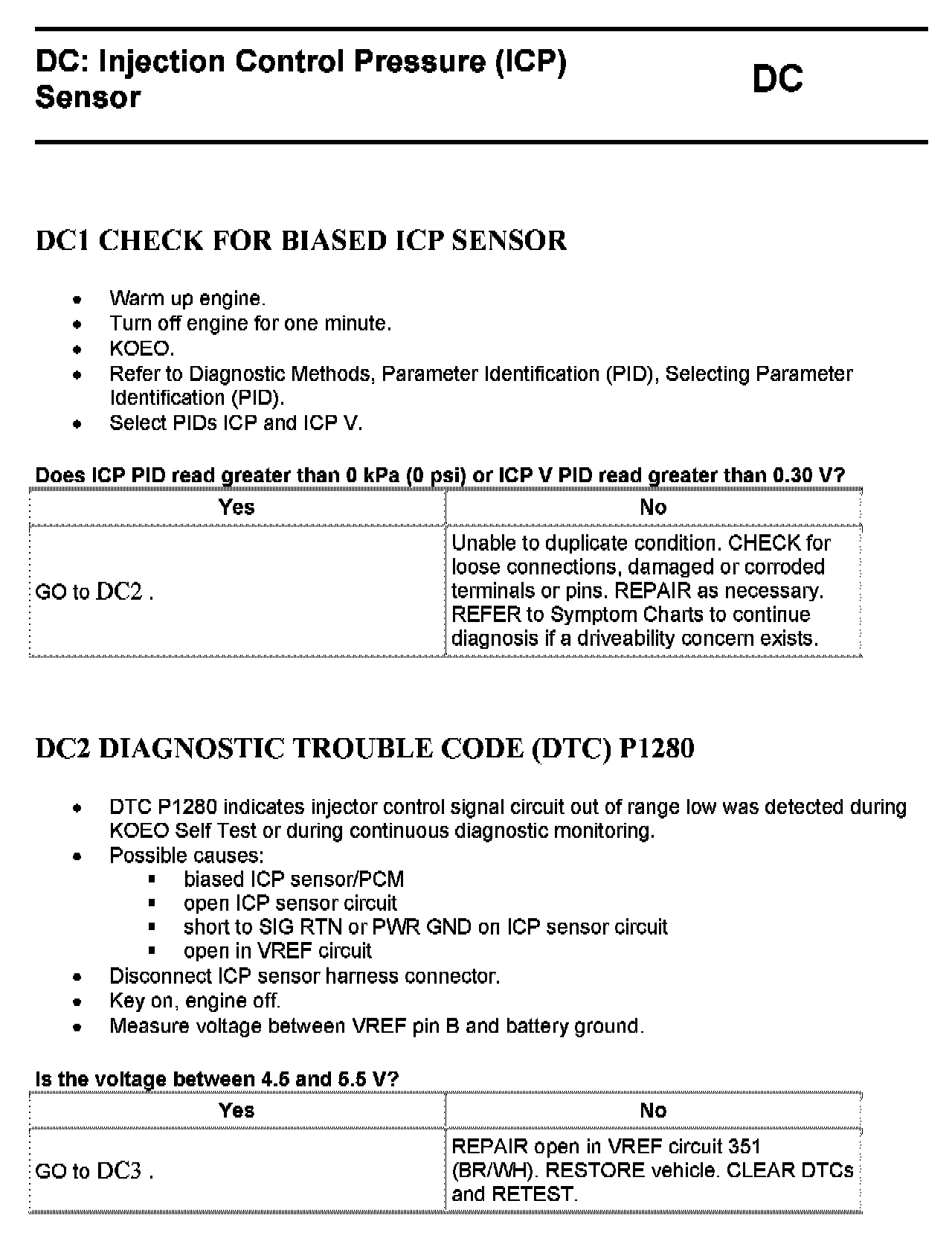 Tests DC: Injection Control Pressure (ICP) Sensor