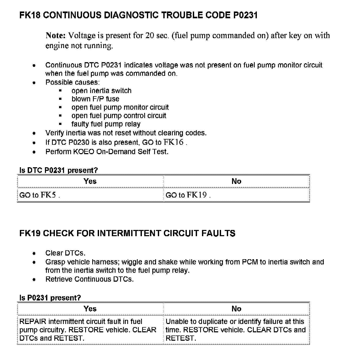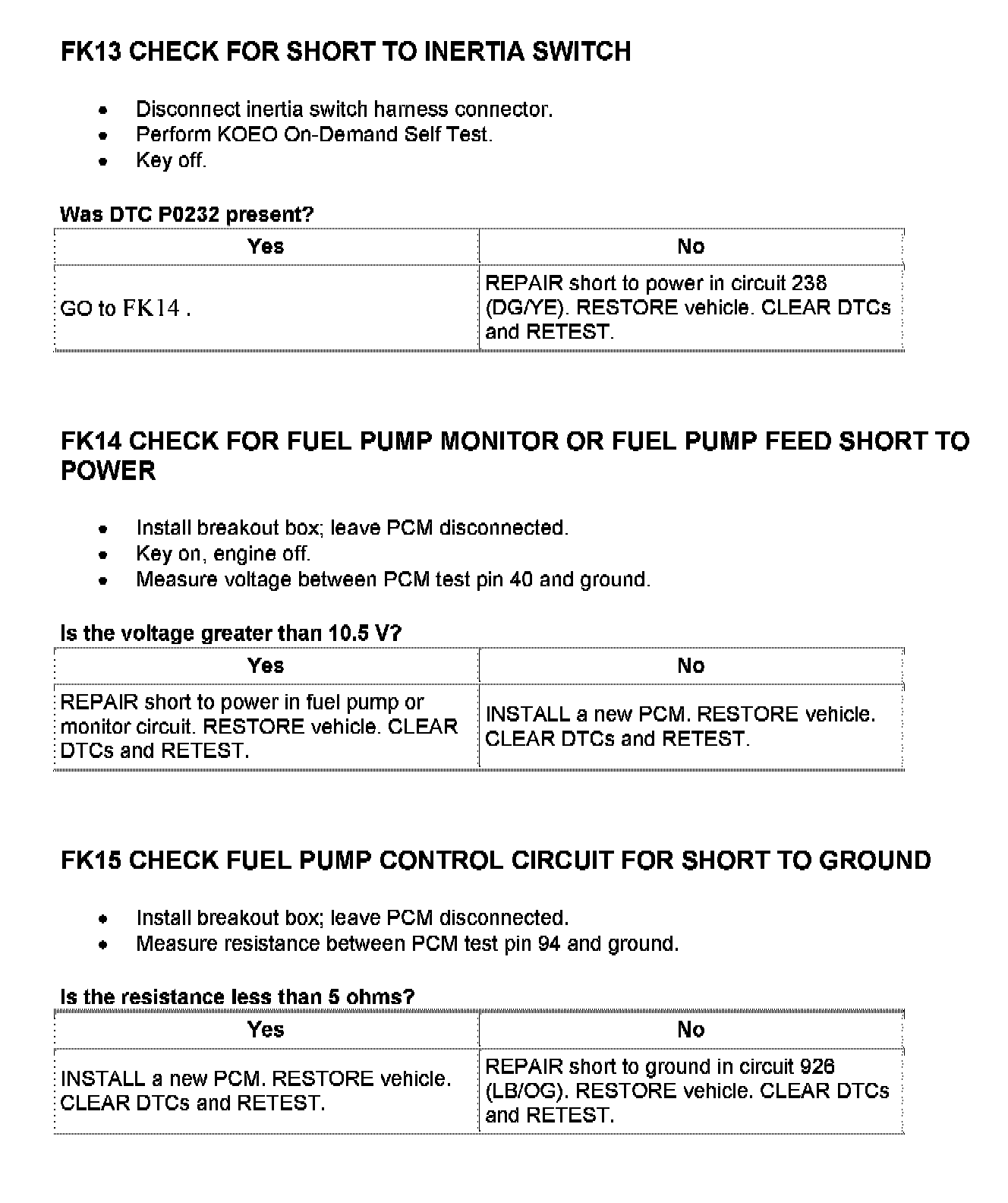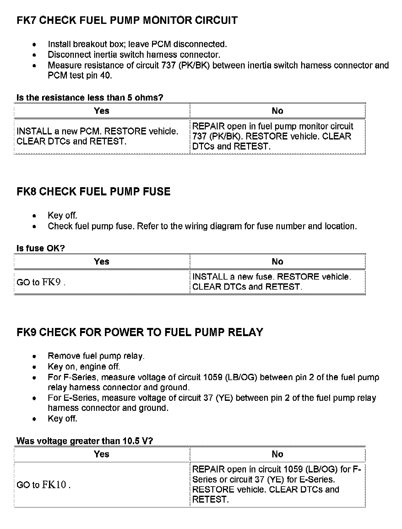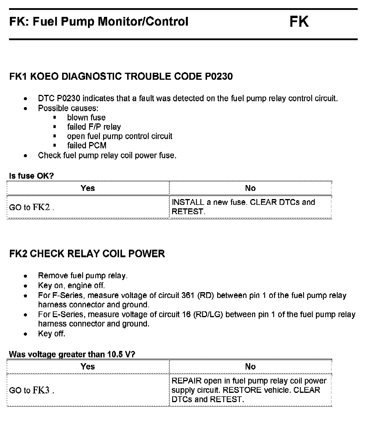 Tests FK: Fuel Pump Monitor/Control