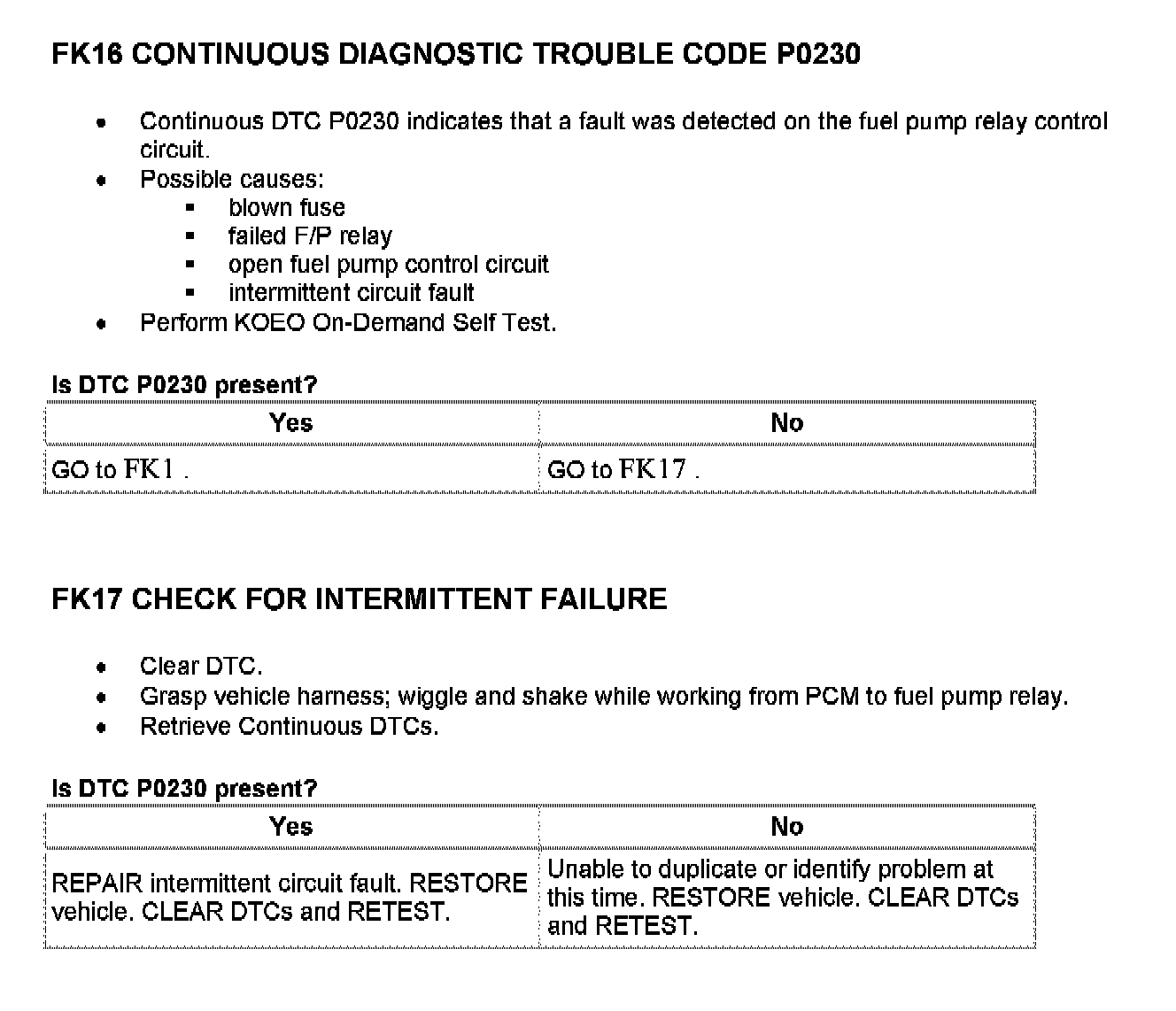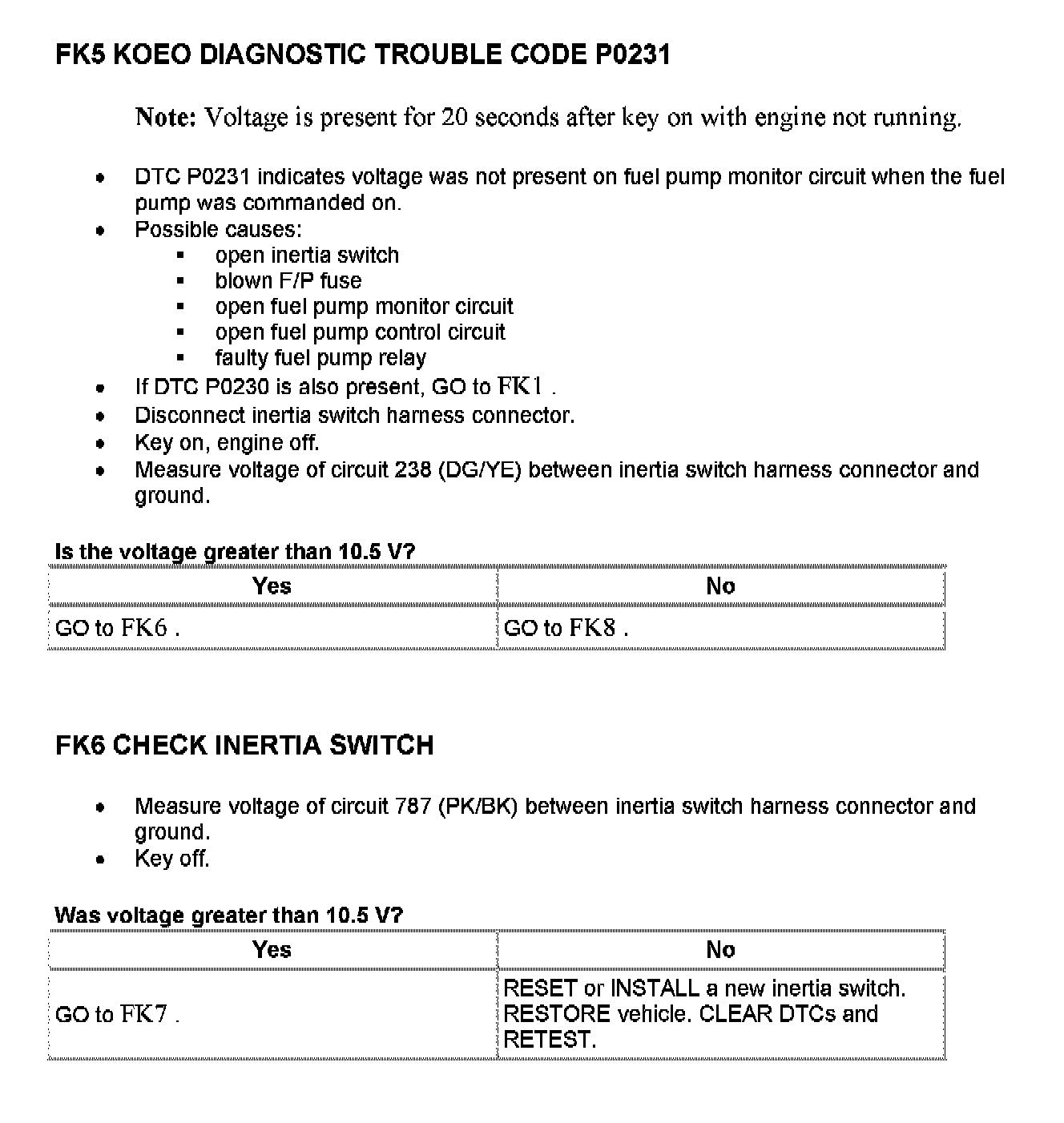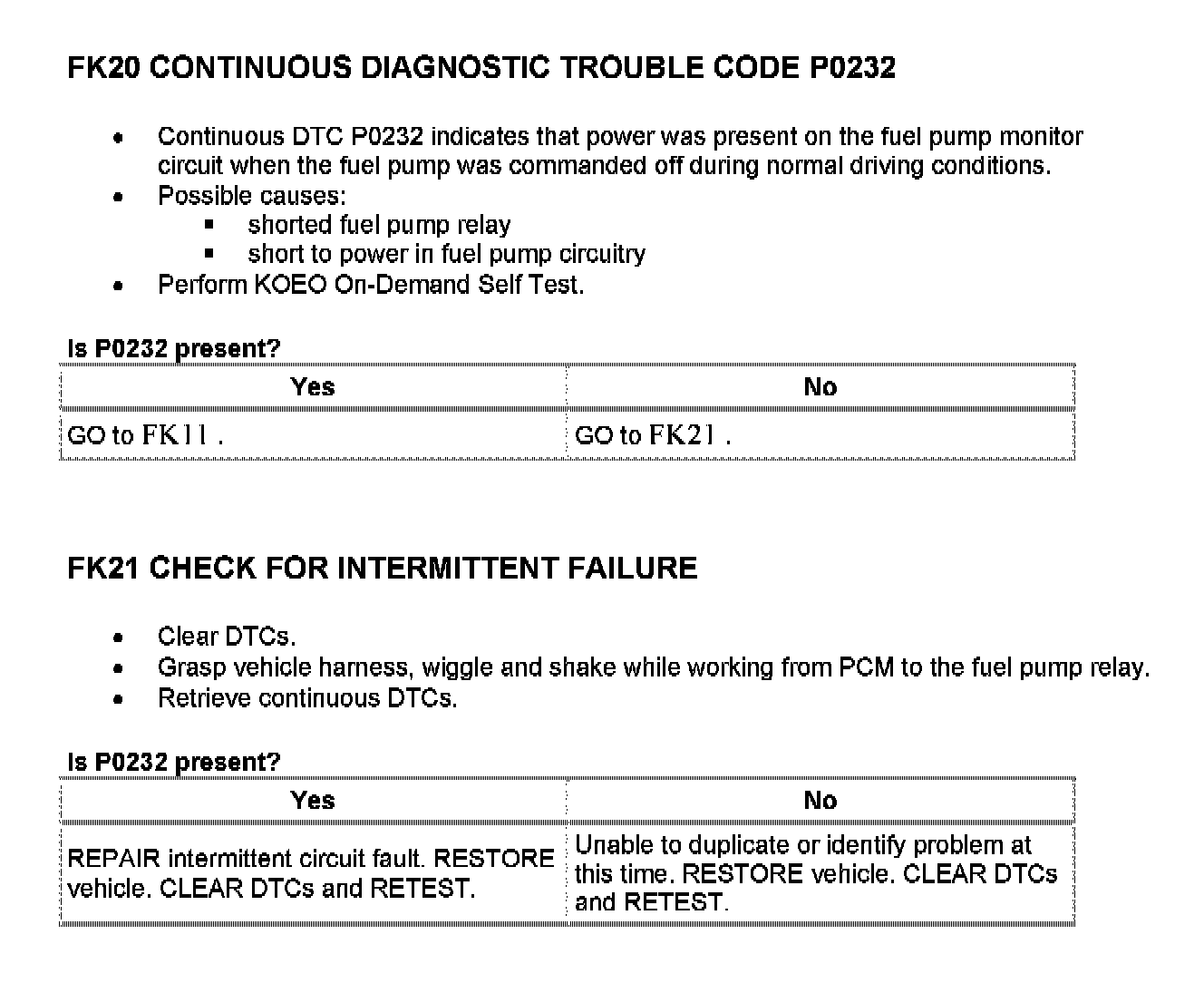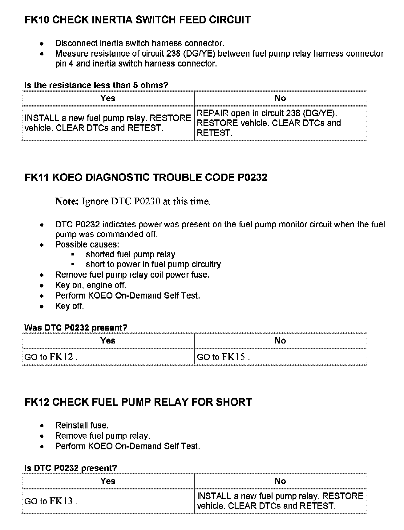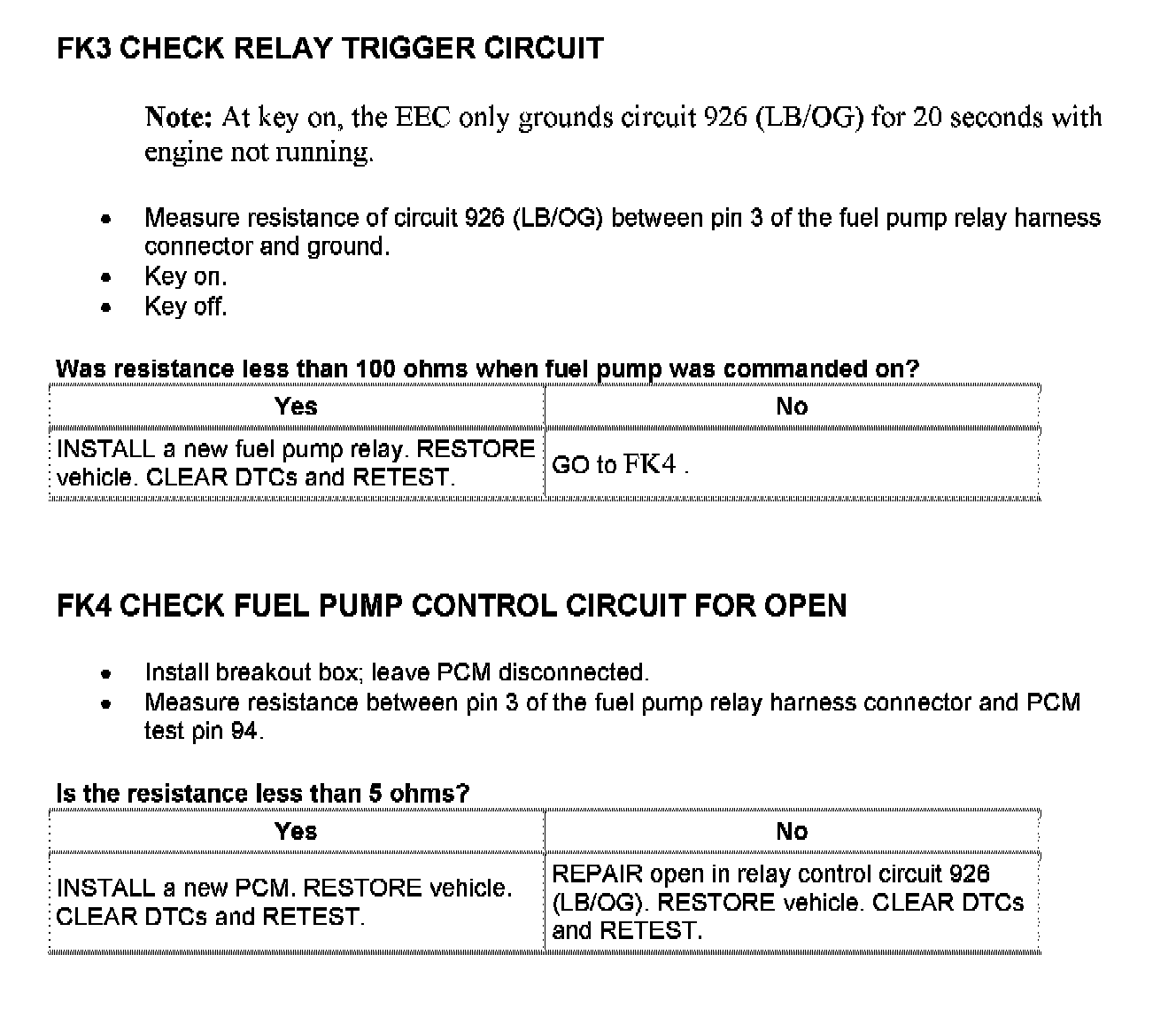 Tests FK: Fuel Pump Monitor/Control