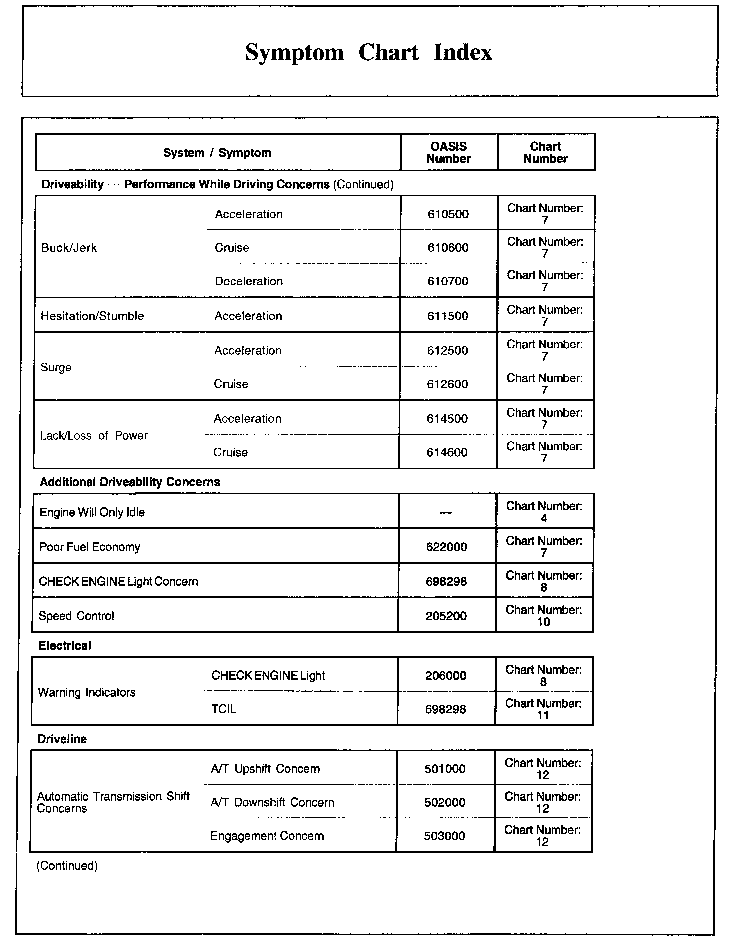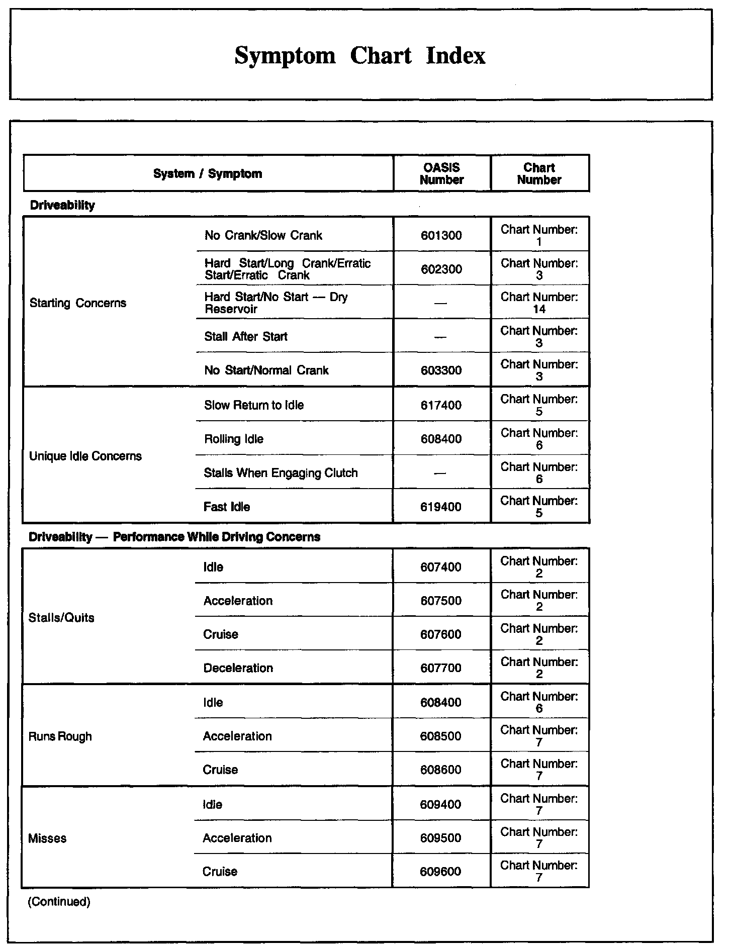Symptom Chart Index, Part 1:
