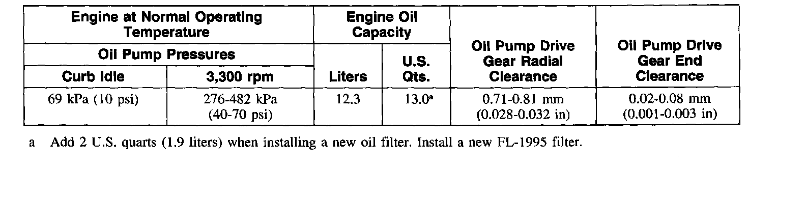and Oil Capacity