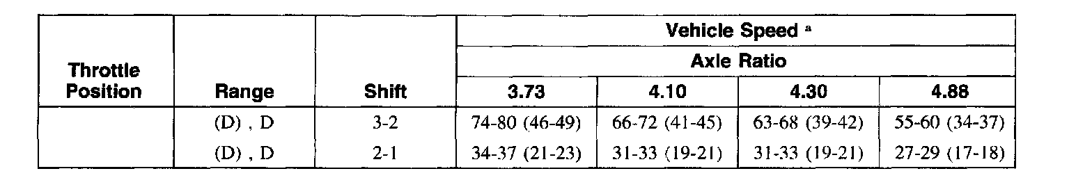 a Nominal shift speed at sea level is shown. Actual shift speed will depend on tire brand, size and axle ratio.