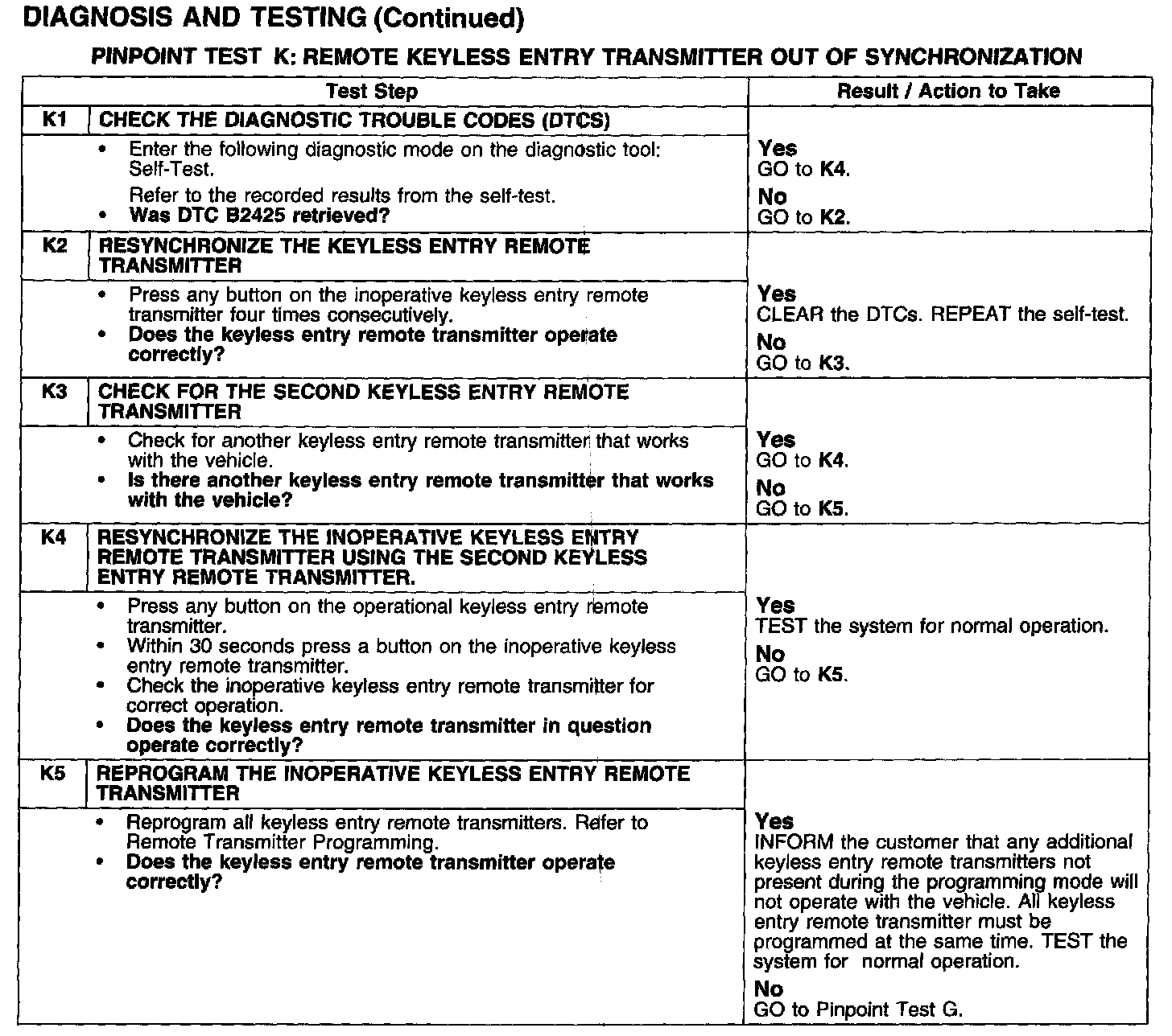 PINPOINT TEST K: REMOTE KEYLESS ENTRY TRANSMITTER OUT OF SYNCHRONIZATION