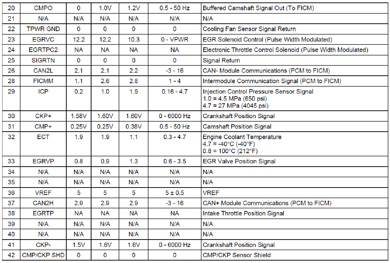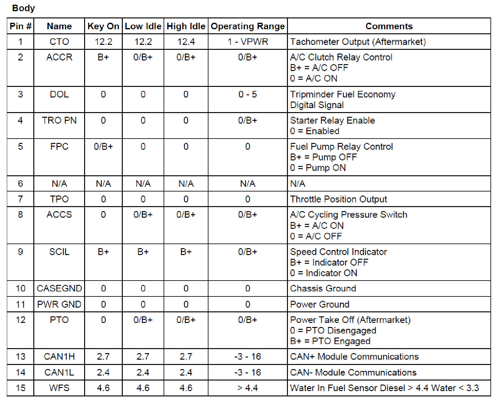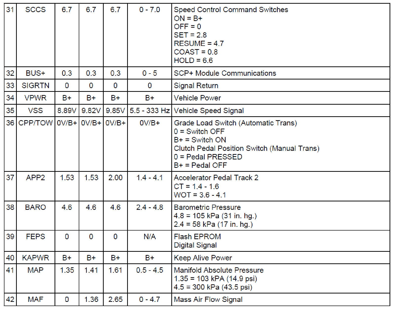 Normal Scan Data Values - Includes PIDs