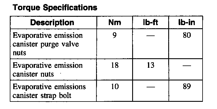 Evaporative Emissions System: Specifications