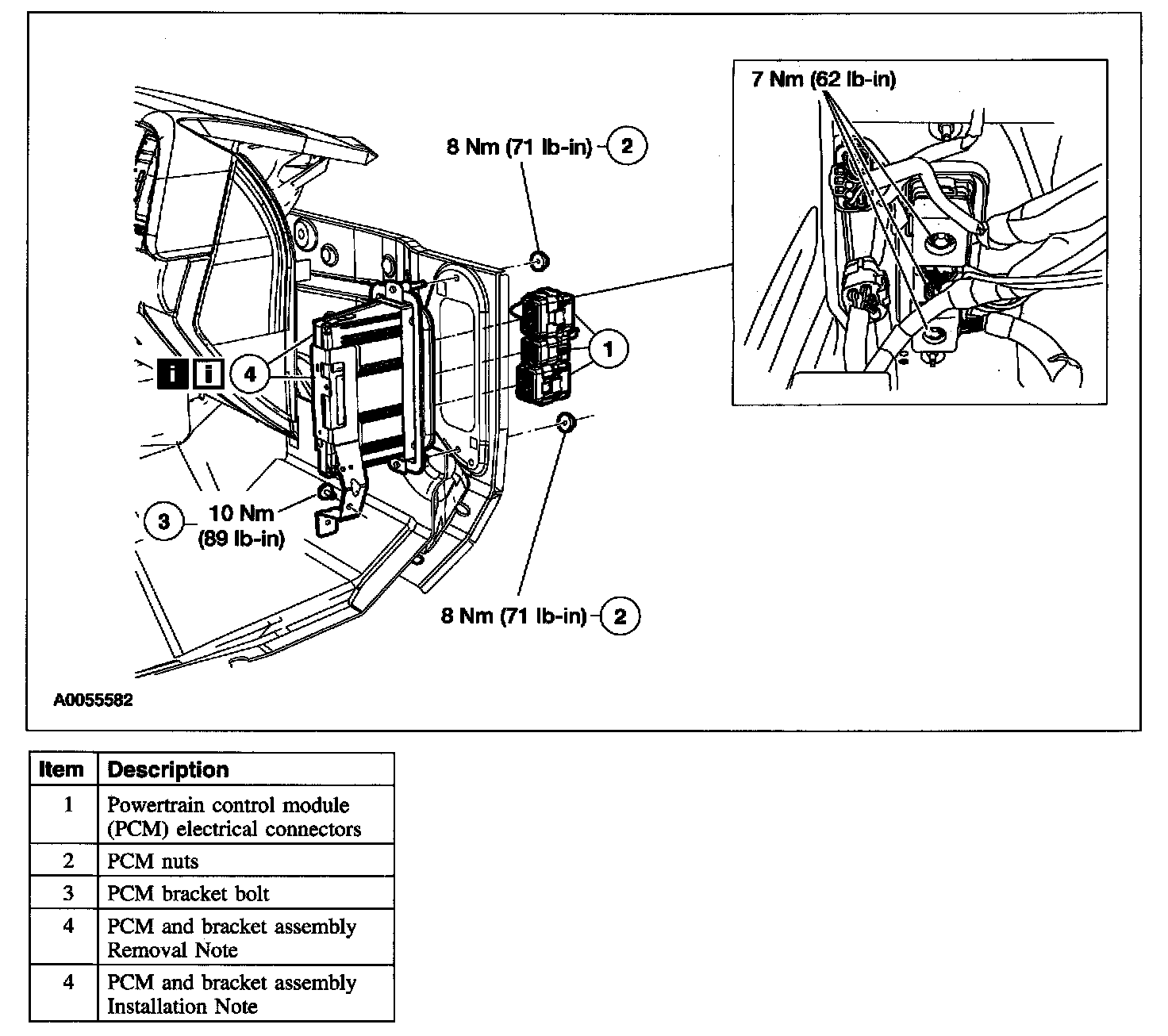 Item 4: Powertrain Control Module (PCM) Removal Note