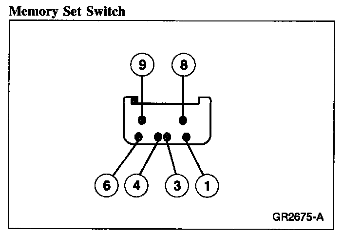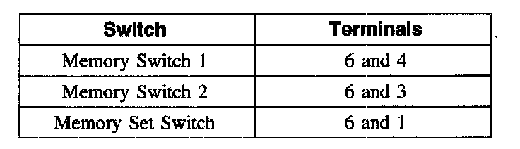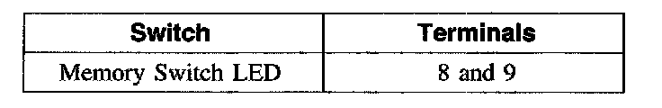 To check the memory set switch LED, connect the positive meter lead to terminal 8 and the negative lead to terminal 9. The meter should indicate greater than 0.3 volts. Reversing the leads, the meter should read OL.