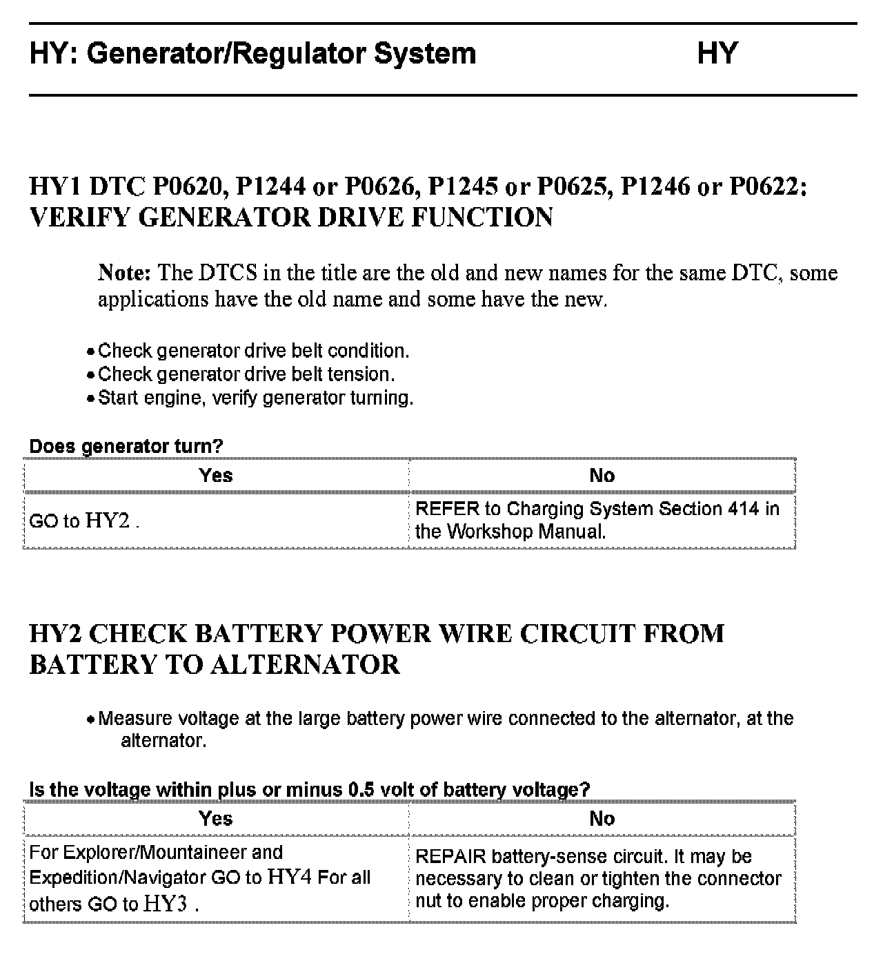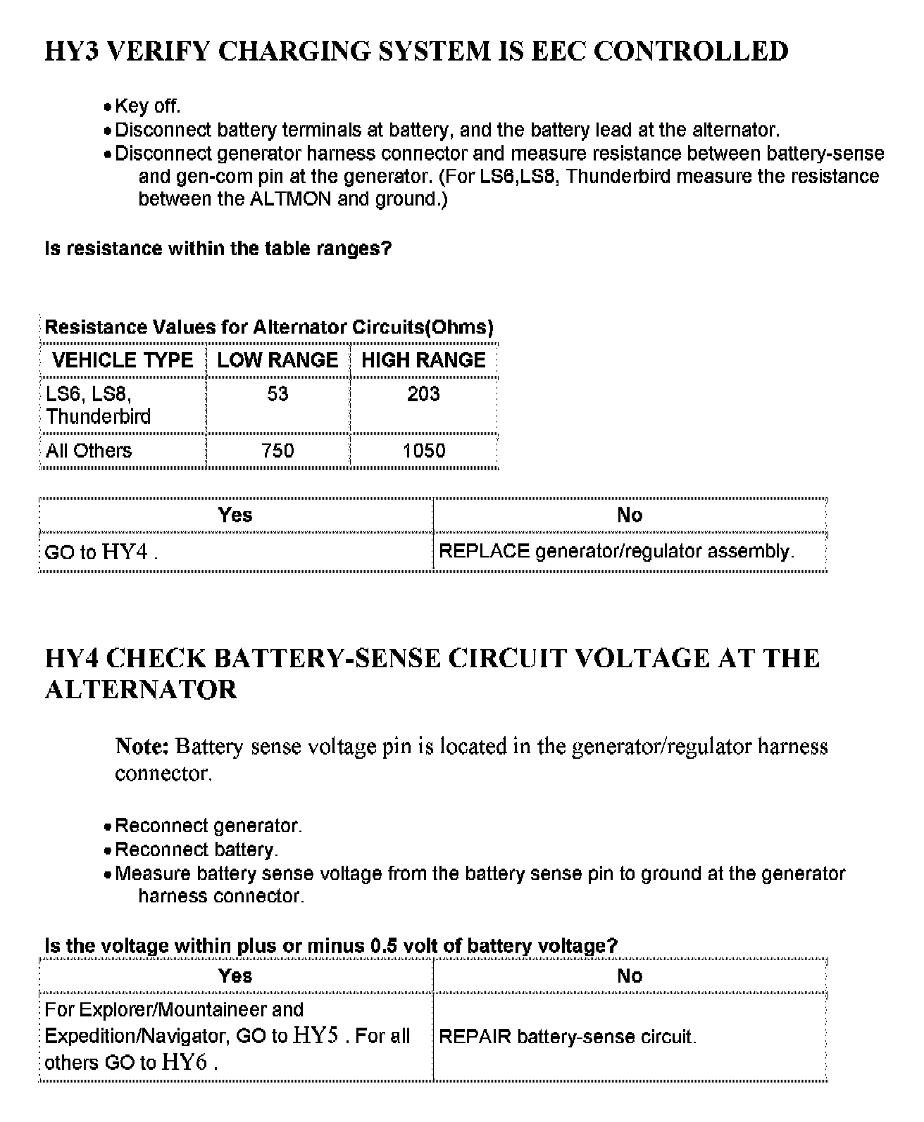 Tests HY: Generator/Regulator System
