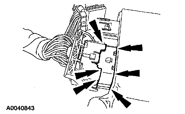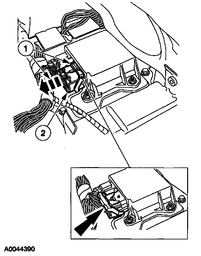 1. Disconnect the large restraints control module (RCM) electrical connector.