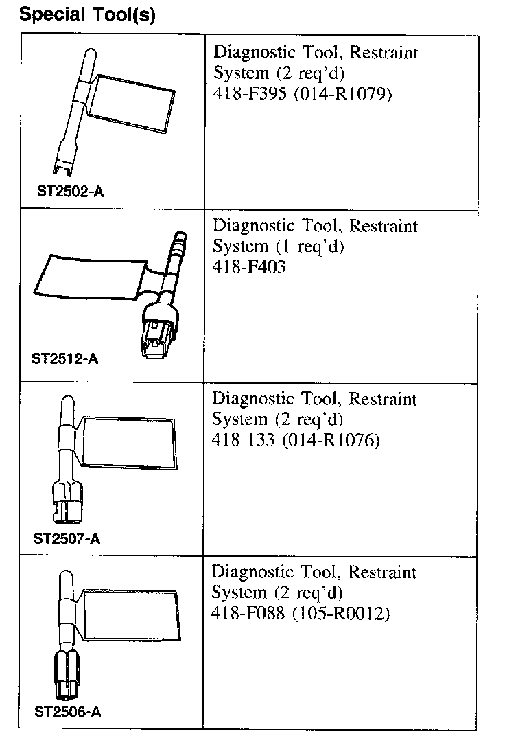3. With the restraint system diagnostic tools installed at all deployable devices, prove out the supplemental restraint system (SRS). Prove Out Procedure