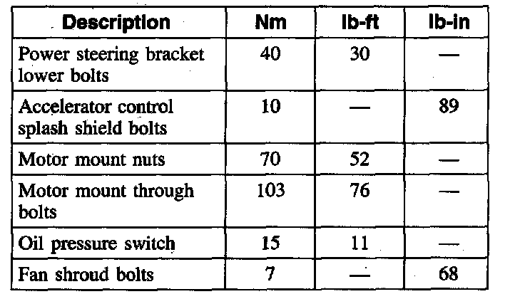 Engine Front Cover Bolts 25 Nm (18 ft. lbs.)