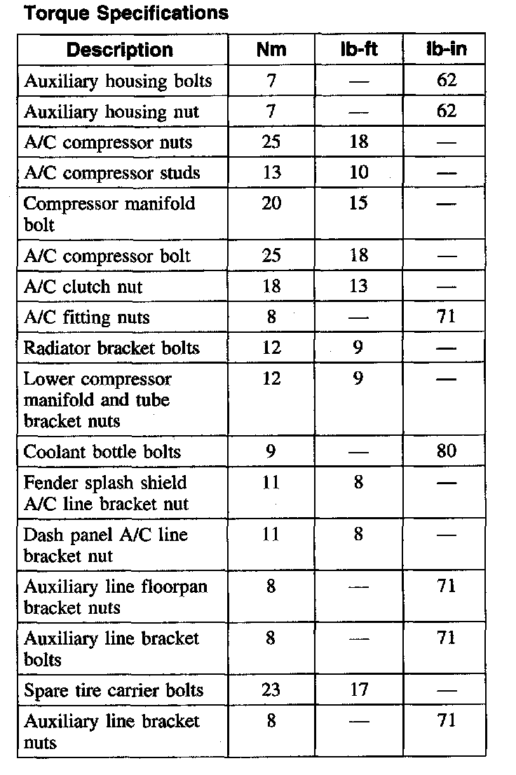 Torque Specifications: