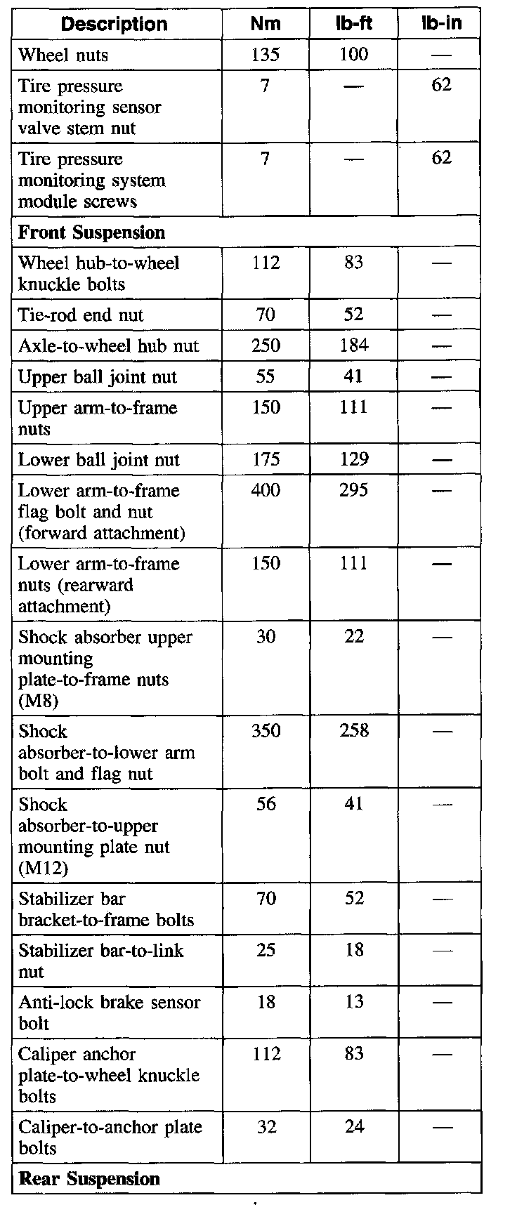 Torque Specifications