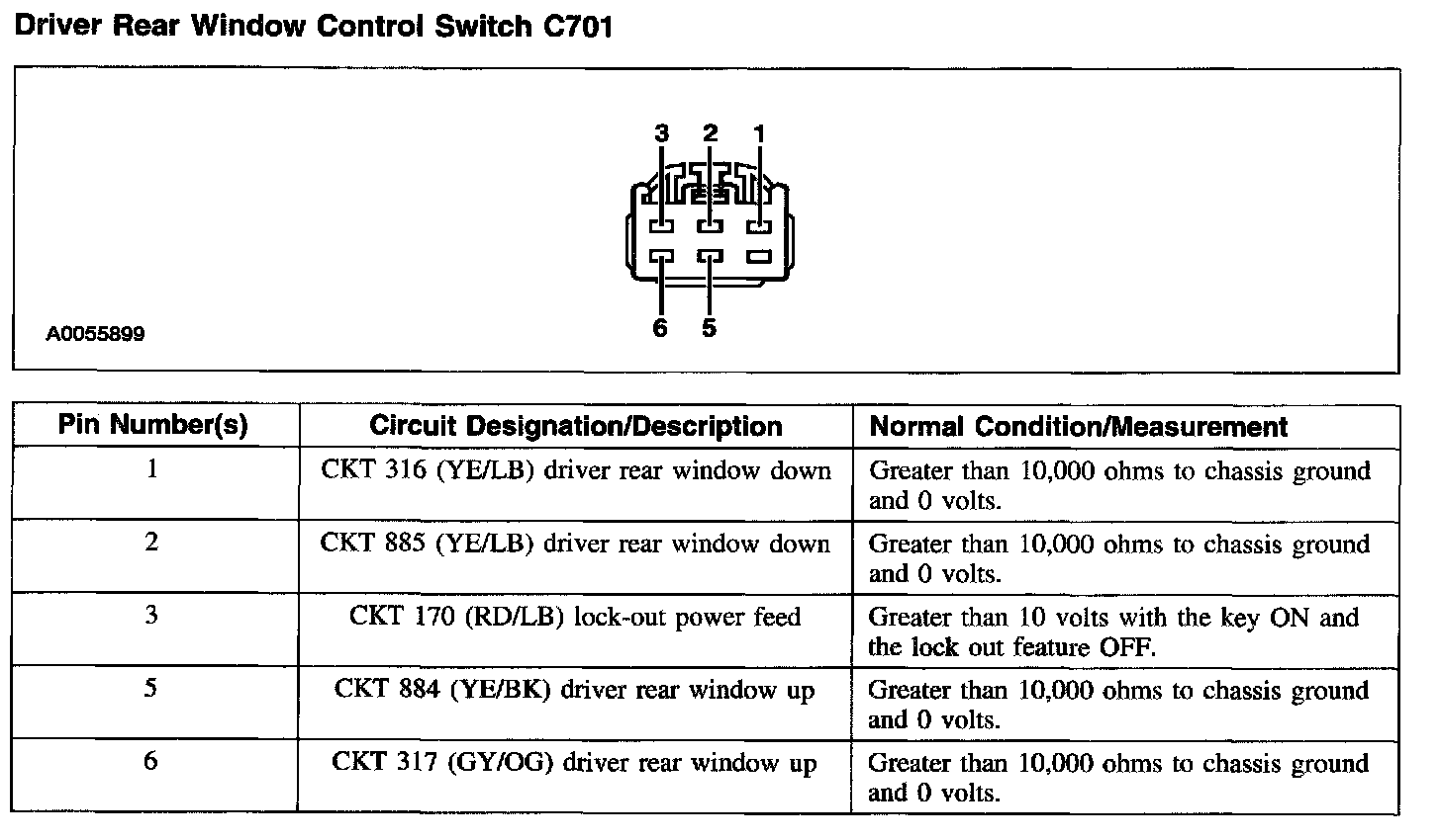 Driver Rear Window Control Switch C701: