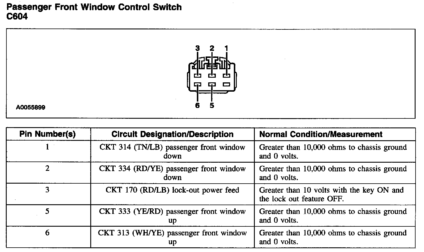 Passenger Front Window Control Switch C604: