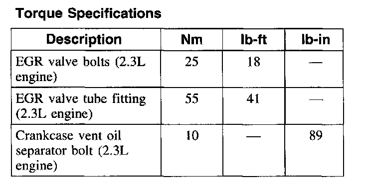 Torque Specifications: