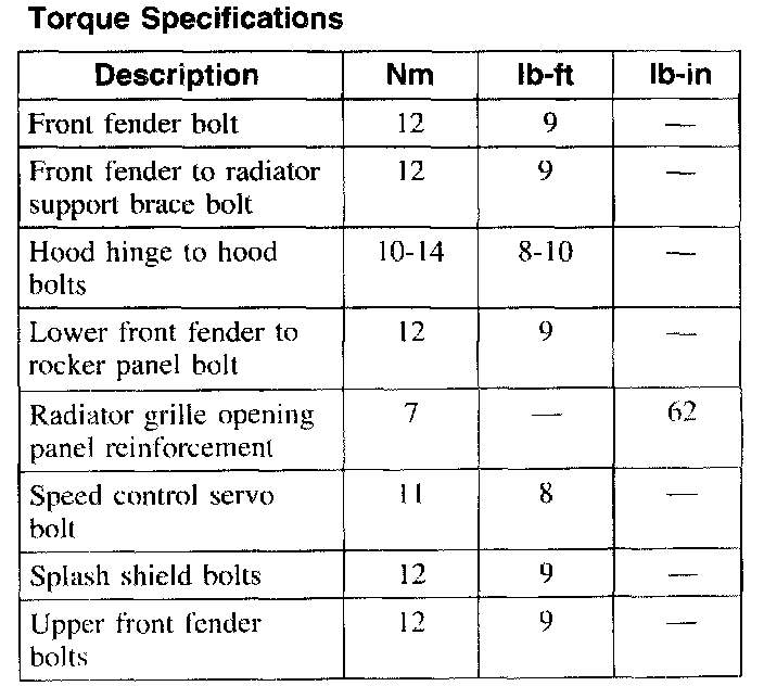 Torque Specifications: